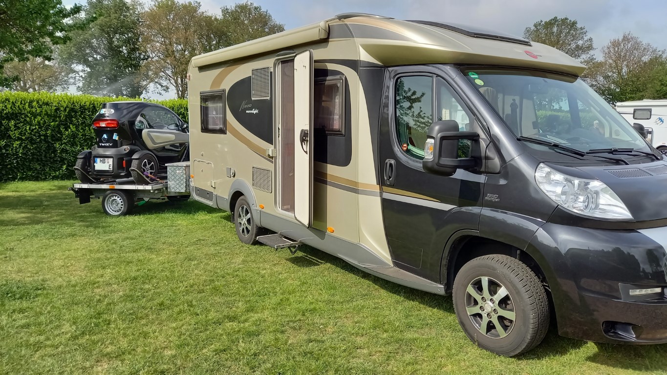 Der Twizy wird alle Kurstrecken abarbeiten und von Frühjahr bis Herbst auf einem Sawiko Wheely Duo hinter´s Wohnmobil gehängt.