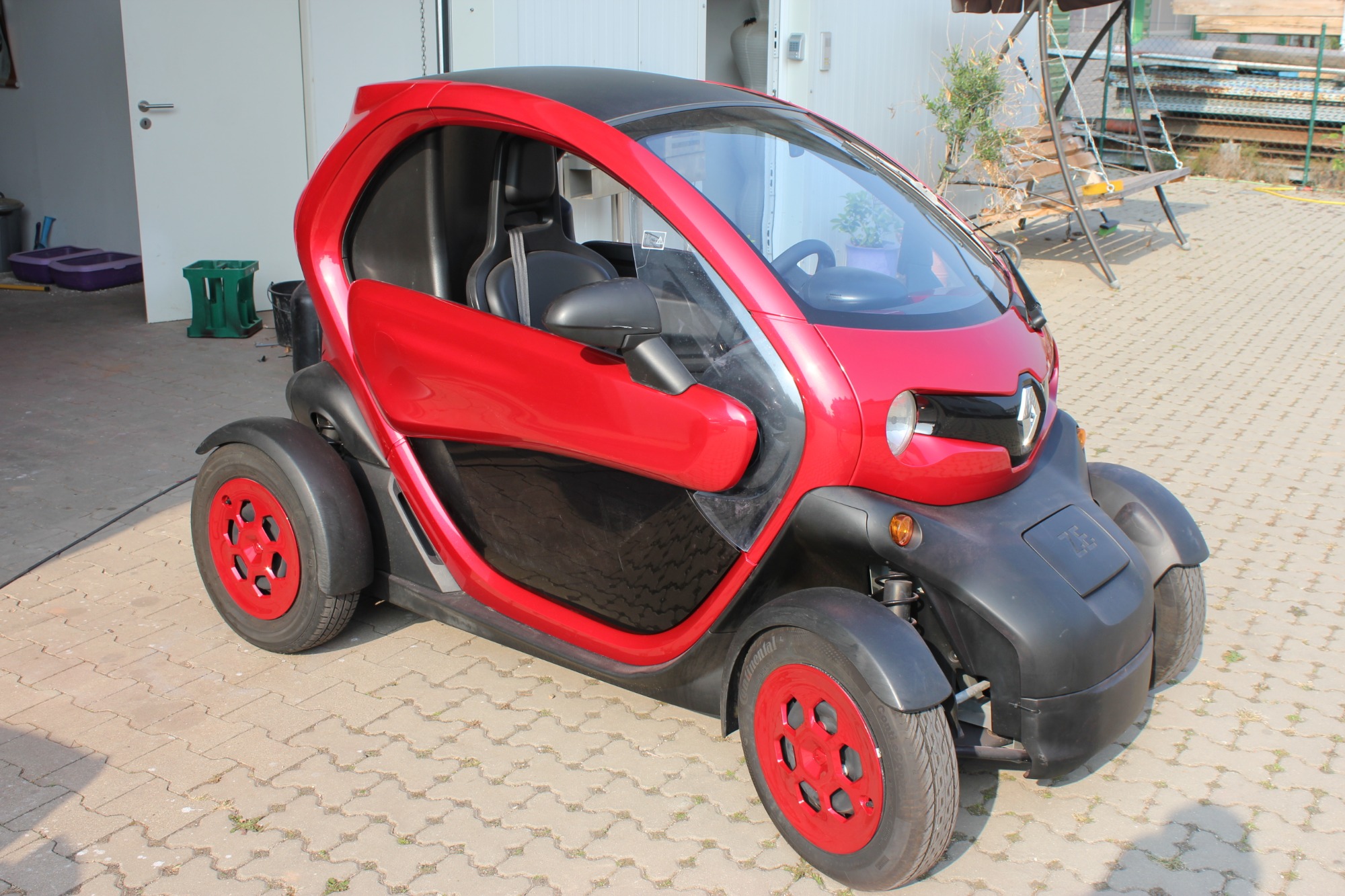 Zu Hause auf über 700m NN ist mein neuer Kleiner in himmelblau (nicht meine Wunschfarbe, aber er hat erst 10.000km, Akkus mit 99% und steht noch super da als Garagen-Twizy ... das hatte Priorität). Er wird also immer mal wieder einen Aufstieg auf die Alb bewältigen müssen, aber das geht recht gut. Sparsam ist er auch bei entsprechender Fahrweise, um die 8 kWh pro 100km, find ich erstaunlich (nichtmal 1l Sprit).