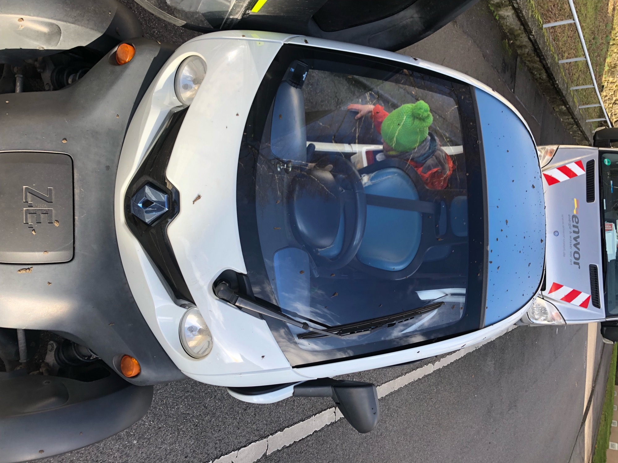 Unser Twizy ist ein 2012er mit 8kW und (immer wieder neu angeschraubten) Elia-Scheiben der Erstserie. (Warum das Foto hier gedreht wird, habe ich nicht herausfinden können :-P