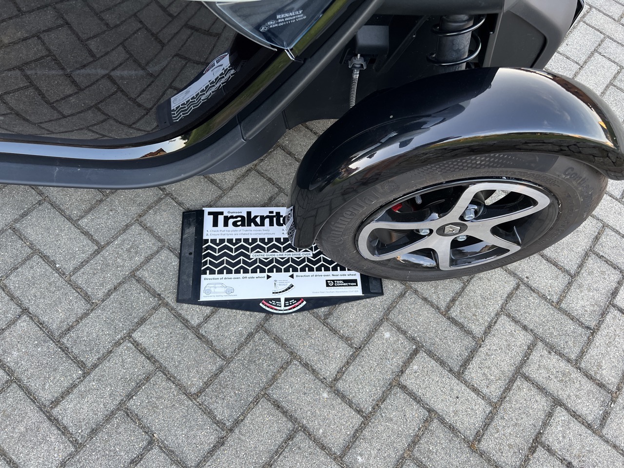 Habe mir dazu auch eine Trakrite Achsmessplatte gekauft. Sie ist gut, aber achtet bitte darauf die Einstellung auf einem in alle Richtungen wagerechten Untergrund durchzuführen. Ich hatte im Hof nur ein minimales Gefälle, sodass das Wasser ablaufen kann. Das reicht damit die Einstellung komplett in die Hose geht und der Twizy dann immer in Richtung des Gefälles fahren will (bzw. das Lenkrad eben ordentlich schief steht um geradeaus fahren zu können).