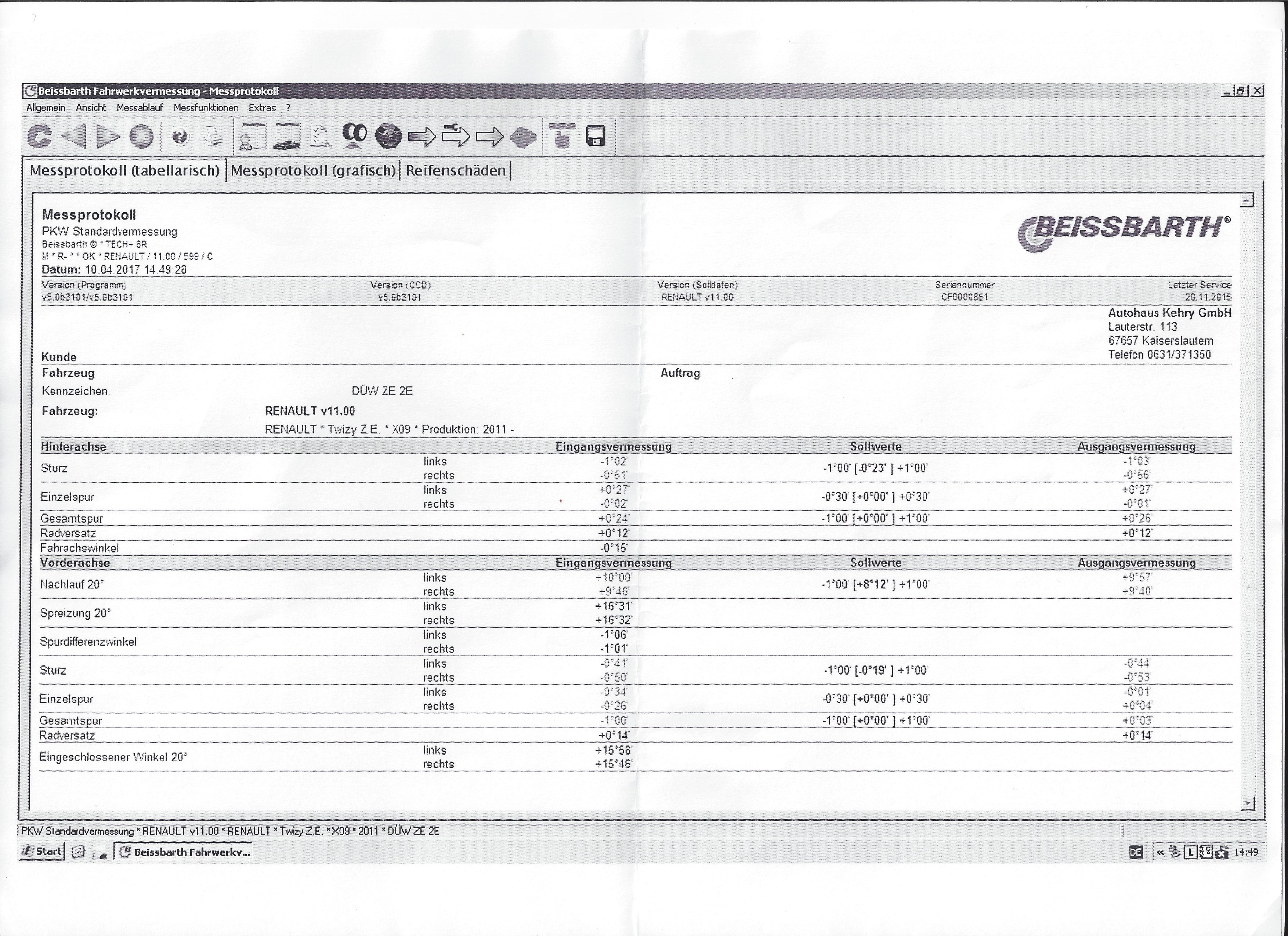 Hier geht´s lang: Achsvermessung -Messprotokoll-