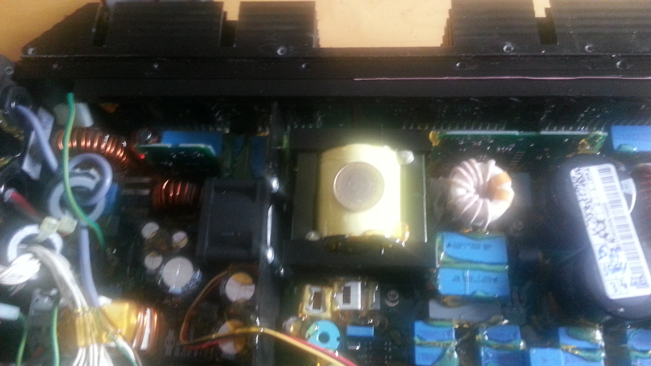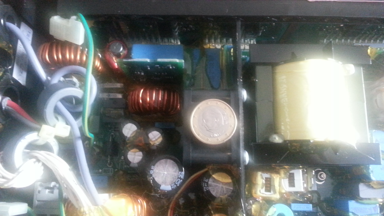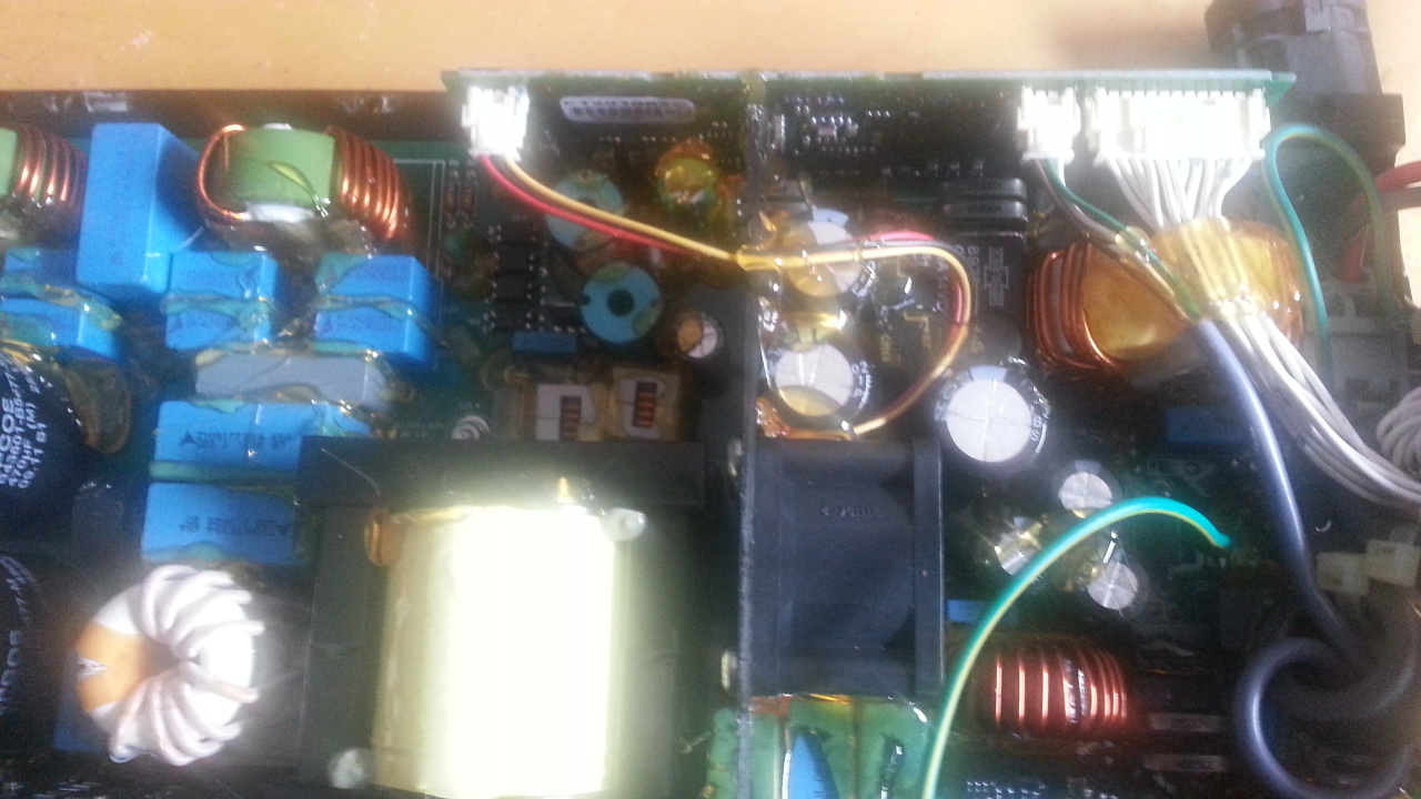 Die Triaks/Transistoren befinden sich auf einer art Aluplatine die wiederum mit Wärmeleitpasste oder ähnliches an die Lüfterseite des gehäuses geklept wurde.