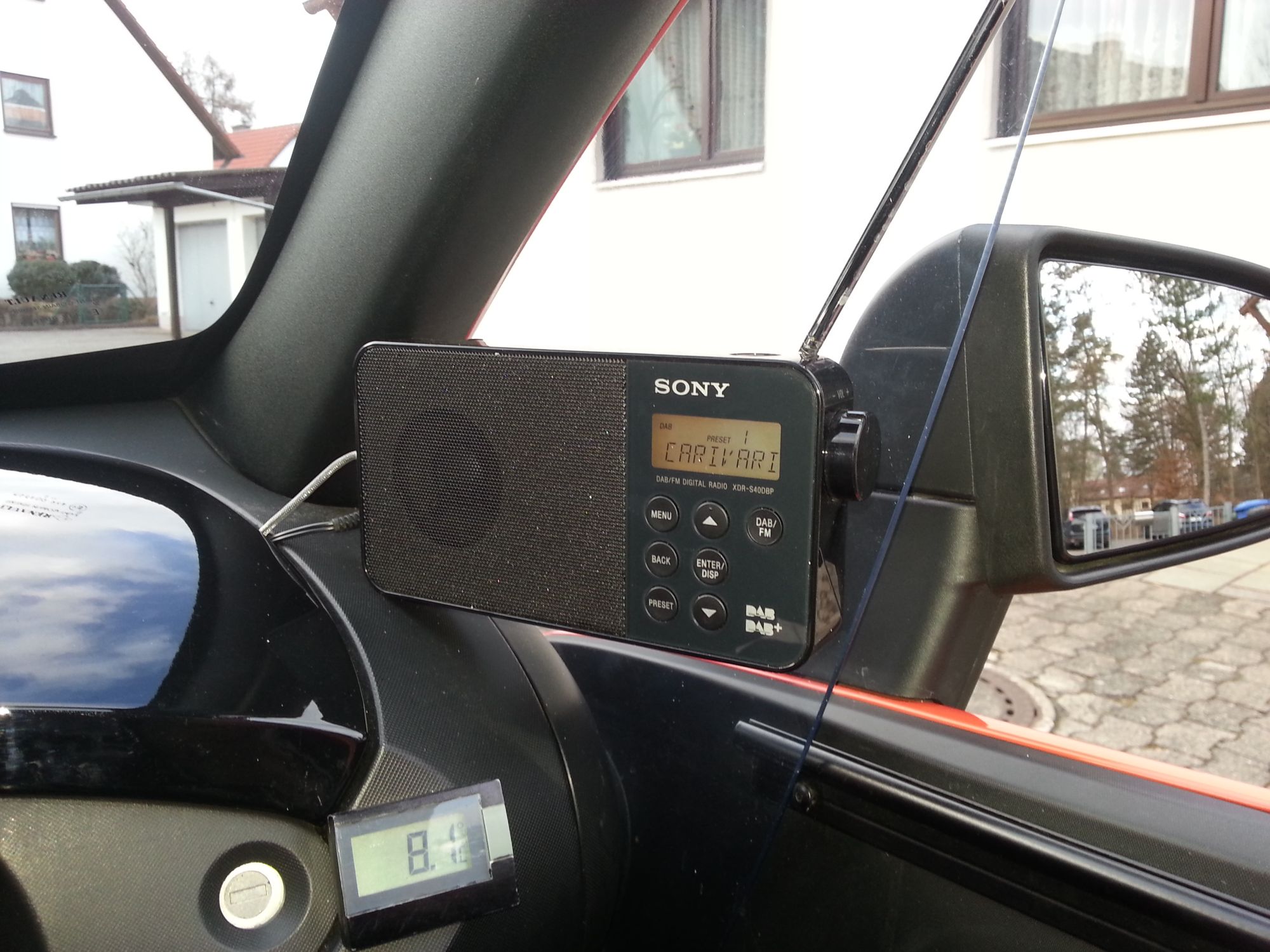 Der Vorteil ist einfach, nach dem Zündung einschalten drücke ich den Knopf am Radio und habe immer sofort Musik, ohne koppeln oder anschließen eines Zusatzgerätes. Stromversorgung Radio über Bordsteckdose.