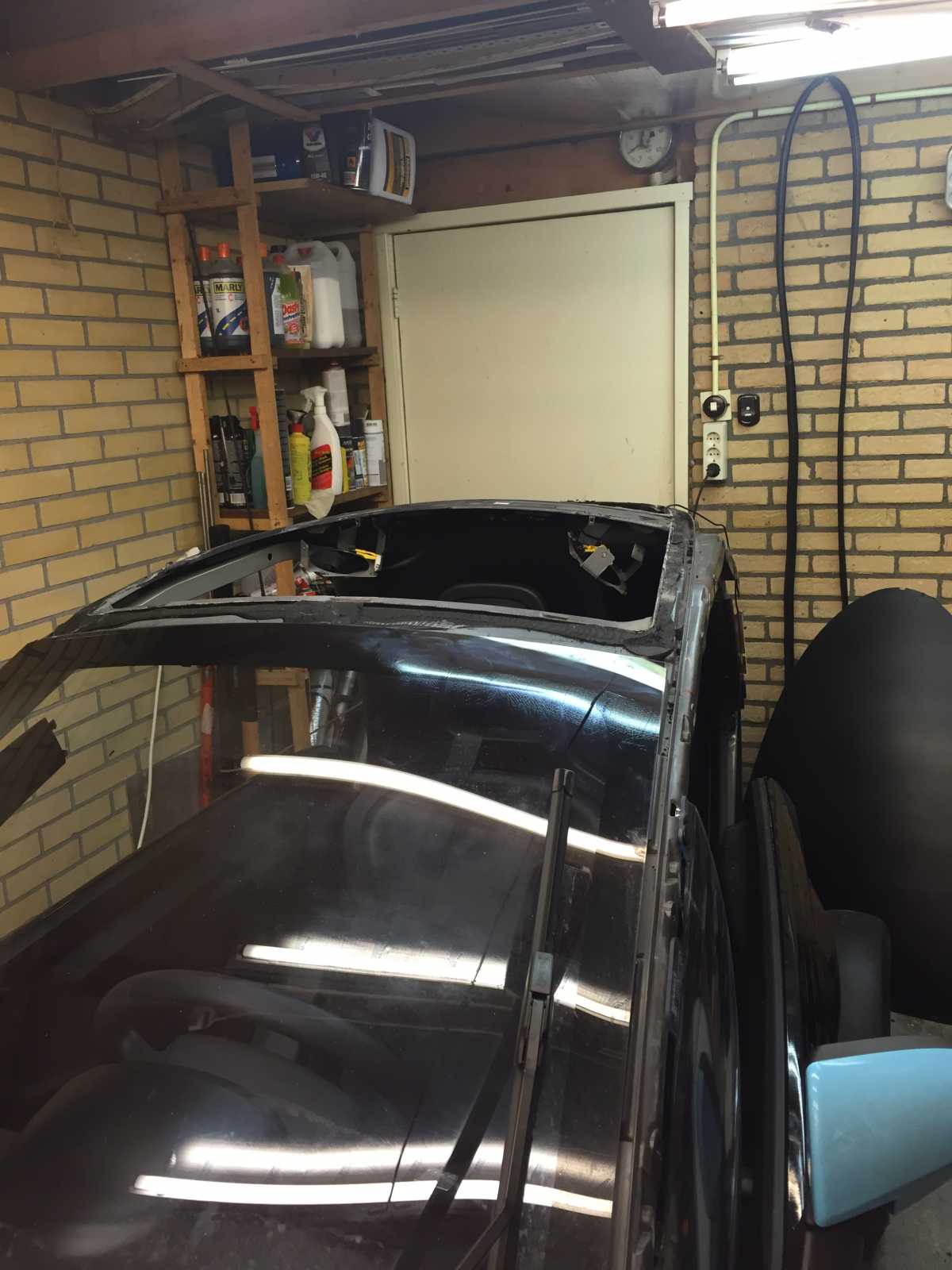 Der Kleine muss ziemlich gestrippt werden, das ist aber Dank der ganzen Plastikteile kein soo großer Akt. Der Tausch selbst ist ähnlich des Tauschs einer Frontscheibe. Das Dach ist eingeklebt und muss erst per Schneiddraht gelöst/rausgeschnitten werden. Dann alles ordentlich säubern, neue Kleberaupe und sauber einpassen. Dann wieder alle Plastikverkleidungen dran, fertig. Kann vermutlich sogar jeder Autoglas-Spezi...