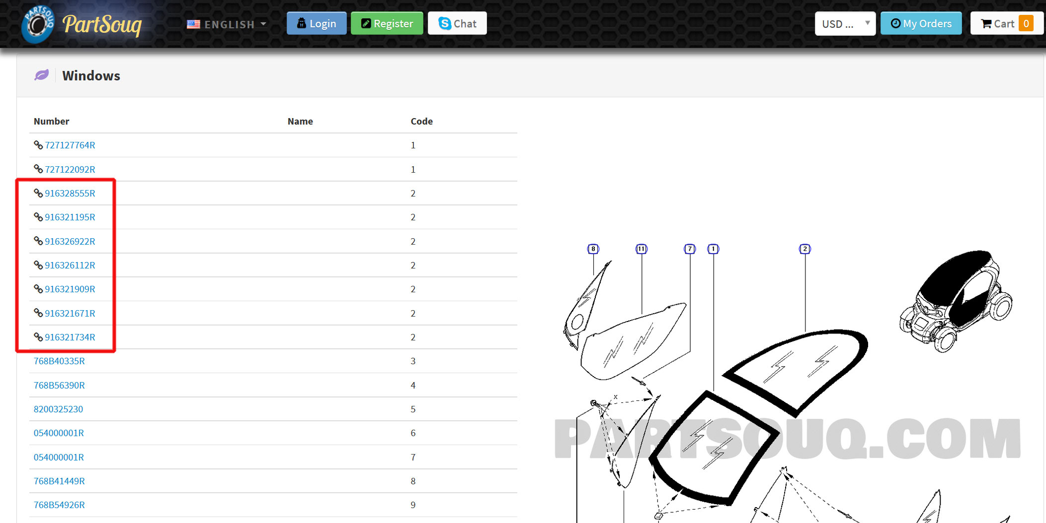 Wenn man die Nummern googelt, kommt man nur auf osteuropäische oder türkische Seiten. Eine russische Seite antwortet für beide Nummern mit einem Twizy Dach.