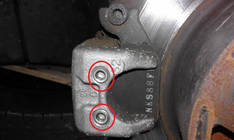Das sind die zwei Schrauben die die Beläge halten, auch immer verpilzt. Die eine habe ich nur nochmal reingesteckt zum Zeigen.