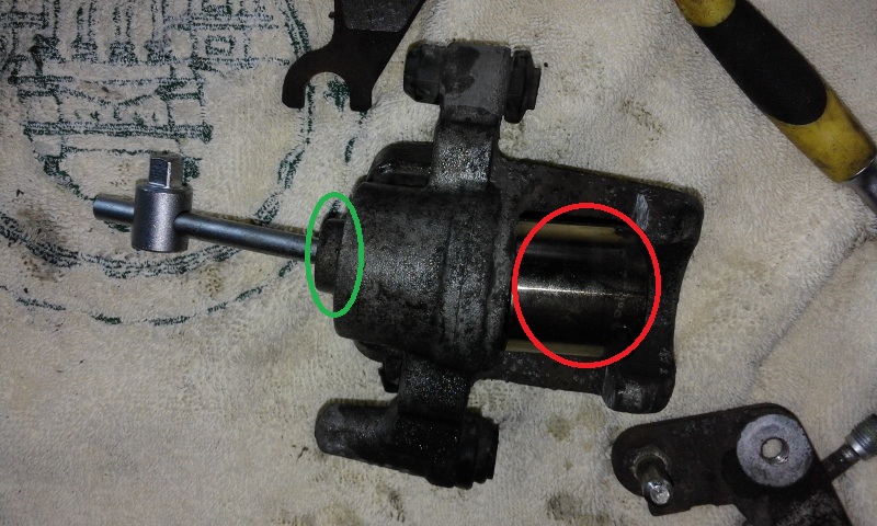 Wie ihr auf dem Bild sehen könnt habe ich eine kleine Verlängerung genommen, ein großer Schraubendreher tut es auch. Vorsicht, da könnte noch Bremsflüssigkeit rauslaufen. (Lappen