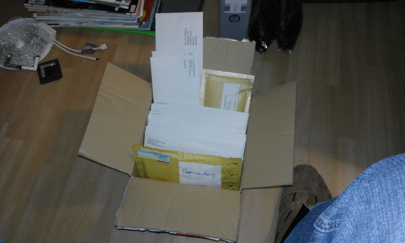 Alle, die bis heute Abend überwiesen oder per paypal Geld geschickt haben sind eingetütet und gehen Morgen ganz Früh in die Post. Als Erster ist Alexos dran, per Express nach Griechenland.