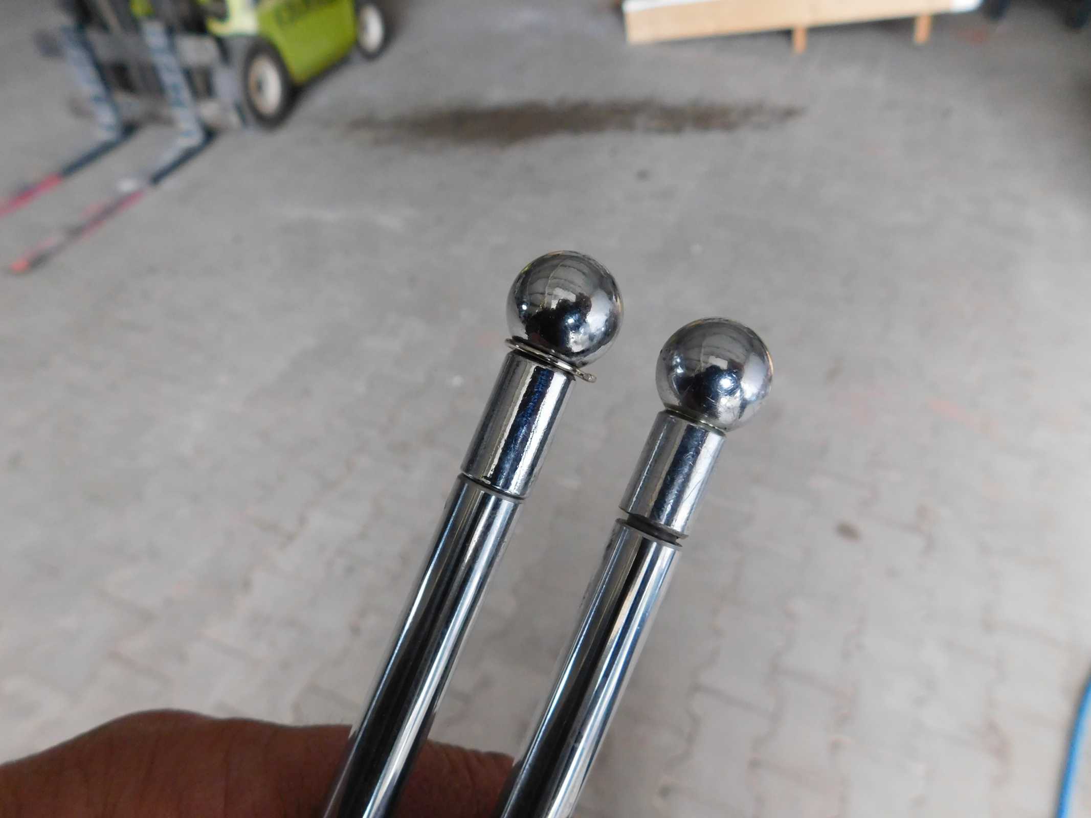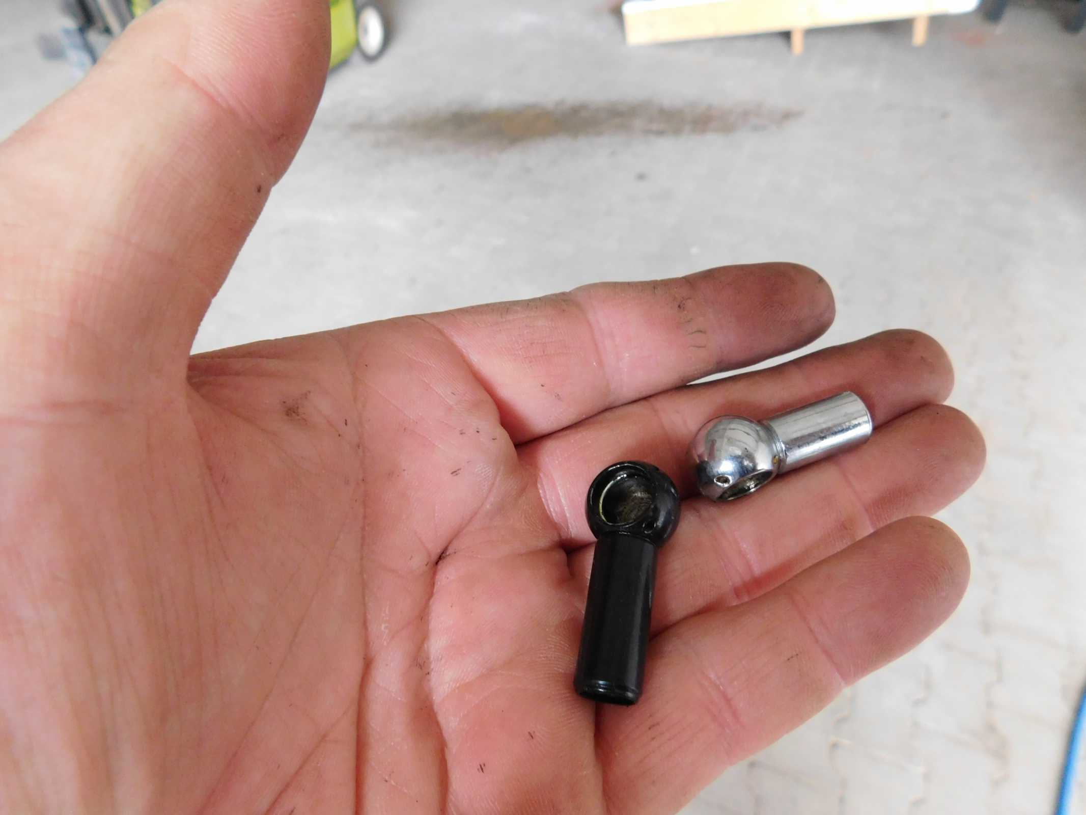 ca 2-3mm sowohl vom unteren als auch vom oberen Kugelkopf (von der Gewindeseite!) abschleifen und wieder aufschrauben.