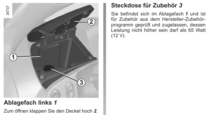 Die 12V-Bordsteckose im linken Hnadschuhfach, da wo auch die OBDII-Buchse ist.