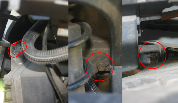 -Hilfsrahmen ist mit 5! Schrauben befestigt, eine oberhalb des Stromsteckers versteckt, dort ist auch eine recht lange "Nase" um das ganze gut anzufädeln. deswegen muss man den Rahmen auch erst ~5cm nach unten absenken eh man das ganze nach hinten bekommt.
