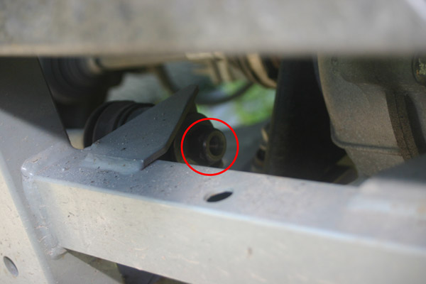 Entfernt man nun noch die Getriebebefestigungschraube und schraubt das Getriebe vom Motor ab (sehr fummelig) sollte man das Getriebe einzen nach unten durch den Hilfrahmen rausbekommen.