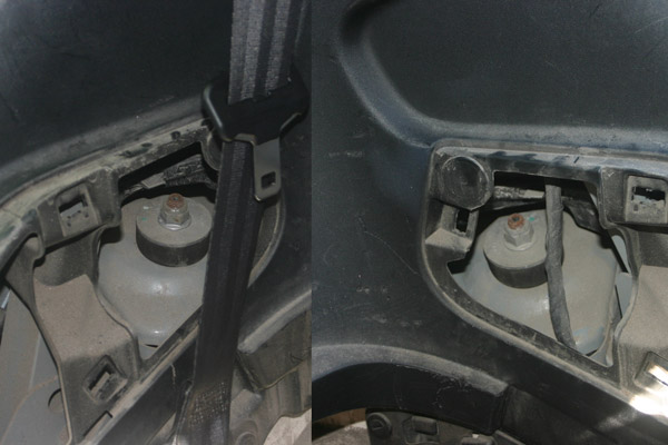 -Stossdämpfer sind hinter einer dreieckigen Verkleidung von innen erreichbar