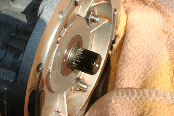 -Die Mauschenverzahnung Motor-Getriebe ist recht ausgearbeitet obwohl das Getriebe nicht alt ist. (Fahrzeug/Motor 28tkm, Getriebe 14tkm)
