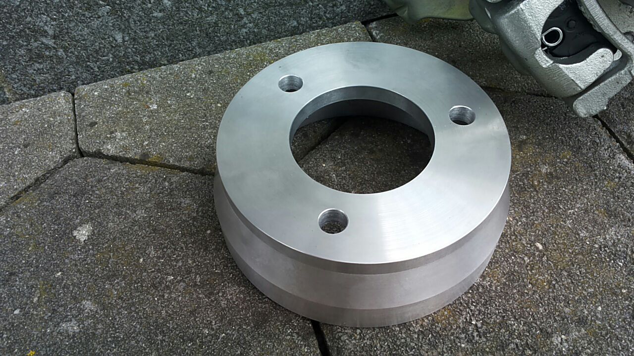 Da bleibt beim " einfachen" Heimwerken mit Drehbank und Fräße nur das Originalteil vom eigentlichen Scheibenbereich zu trennen und quasi einen " Topf" mit dem passenden Innendurchmesser drüberzustecken und mit den Radschrauben zu befestigen. Wäre dann noch ne kleine Spurverbreiterung oder auch eine Möglichkeit den Lochkreis zu ändern... und könnte im Scheibenbereich für wechselbare Motorradscheiben ausgeführt werden.