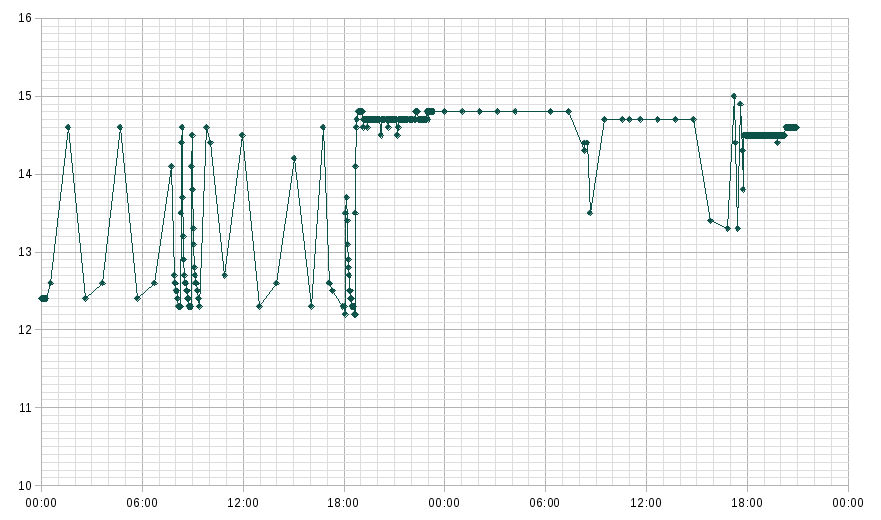 Evtl. ist das ein Bug, der bei "GO" nicht auftritt? Müsste in meinem Telemetriearchiv kramen um das zu prüfen. Die Aufzeichnung aus der Nacht zeigt eindeutig, dass die Spannung die ganze Zeit hoch war: