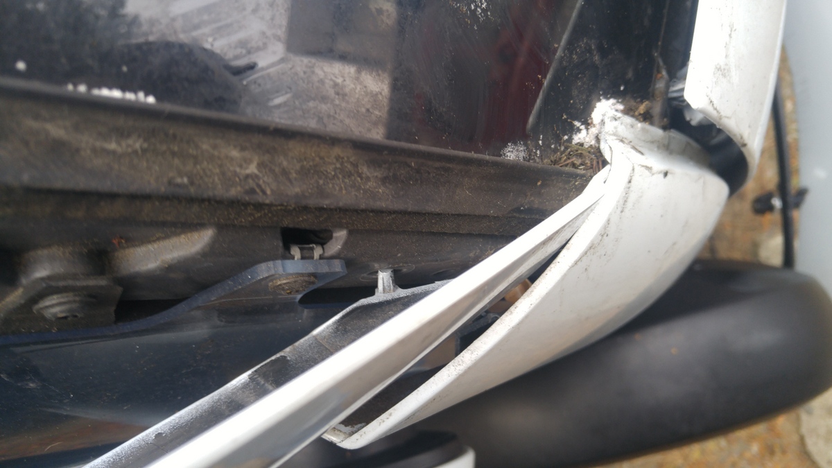 3. Verkleidung der Holme abnehmen. Man beginnt bei der hinteren Verkleidung, die ist nur gesteckt (trotzdem Vorsicht, vor allem bei tiefen Temperaturen, da ist alles etwas spröder). Dann die eine Schraube lösen und mit der vorderen Verkleidung weitermachen. ACHTUNG: ganz vorn ist noch ein kleiner "Nupsi", der unterhalb der Frontverkleidung in den Rahmen greift, also die Frontverkleidung an der Stelle ein kleines bisschen abziehen, damit man die Holm-Verkleidung vorsichtig rausziehen kann. (siehe letzte 3 Fotos).