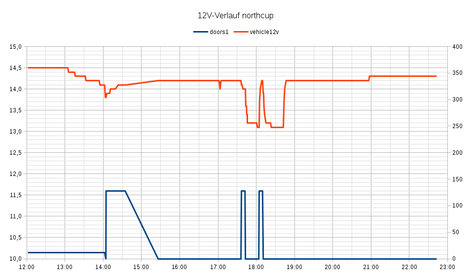 Für die tägliche Auswertung schau Dir einfach die Spalte "vehicle12v" in Tabelle "D" an.