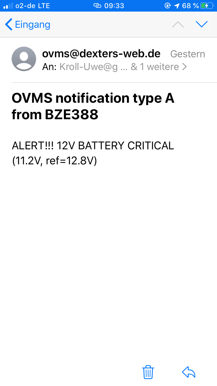 Leider habe ich diese Alerts nicht bekommen. Nur etwas davon, dass mit der Sevcon irgendetwas nicht i.O. ist.