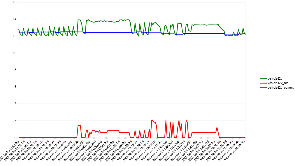 Zwischen 05 - 07 Uhr erhielt der Twizy Strom. Während der restlichen Zeit "ernährte" sich die 12V-Batterie vom grossen Akku.