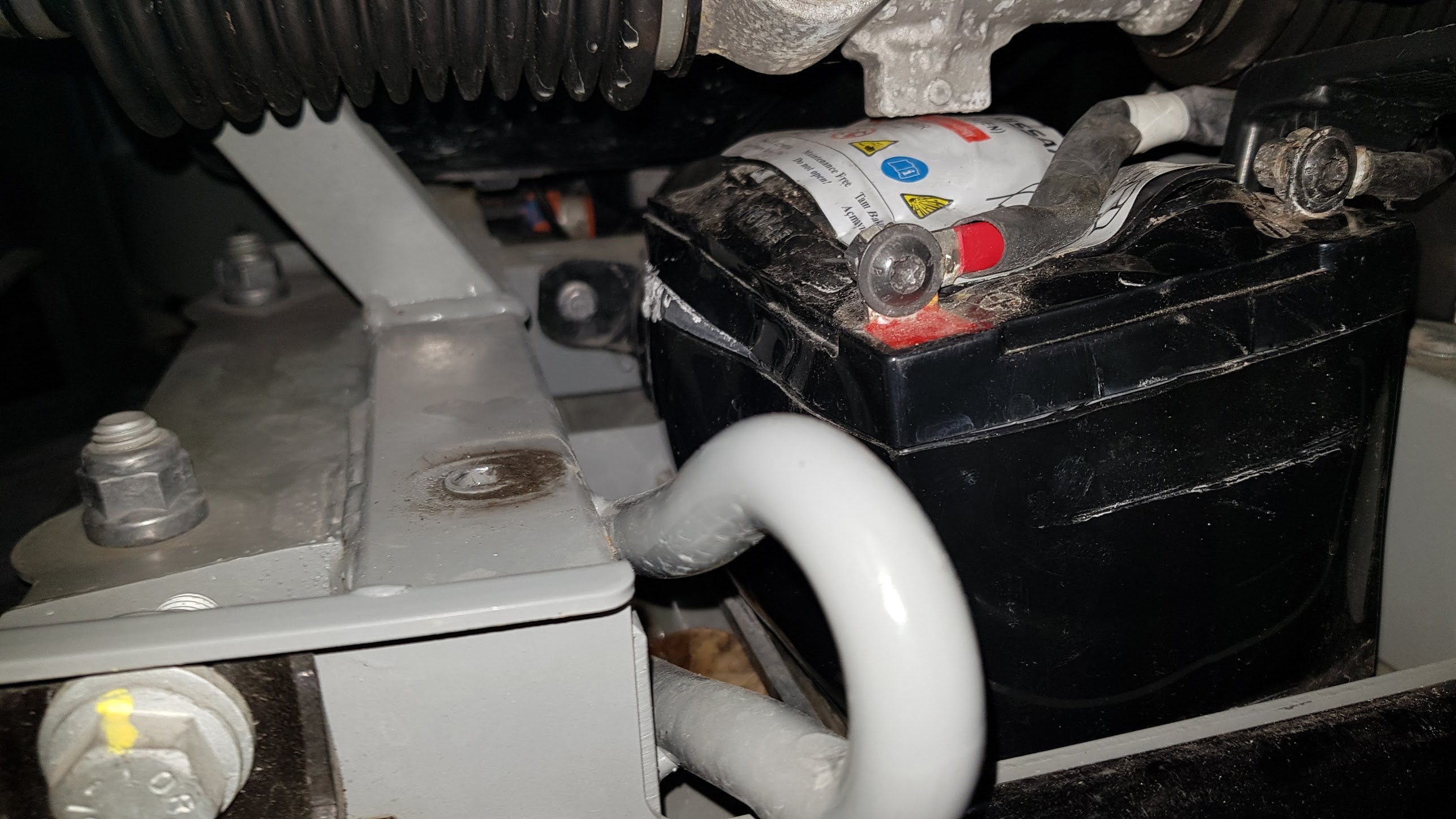 Wir haben im Twizy ein 12V Bordnetz das unabhängig vom 48V Hauptakku verfügbar sein muss. Das wird vom Hautnetzteil beim Laden des Hauptakku und während der Fahrt geladen. Die Ladespannung scheint etwas zu hoch. Auch kann es passieren dass der 12V Akku u.a. vom OVMS leer gesaugt wird. Eine zu niedere 12V Spannung ist auch der Grund dass Serv und/oder Stop Signal leuchten und dass im Worst Case das Fahrzeug nicht los fährt. Durch das ziehen der 60A Twizy Hauptsicherung kann das verhindert werden.