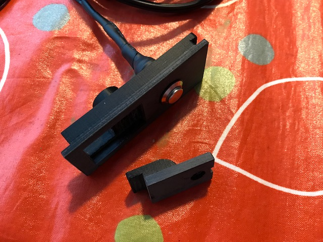 Der Halter ist für Schalter mit einem Durchmesser von 12 mm, man kann das Loch aber auch aufbohren für größere Schalter.