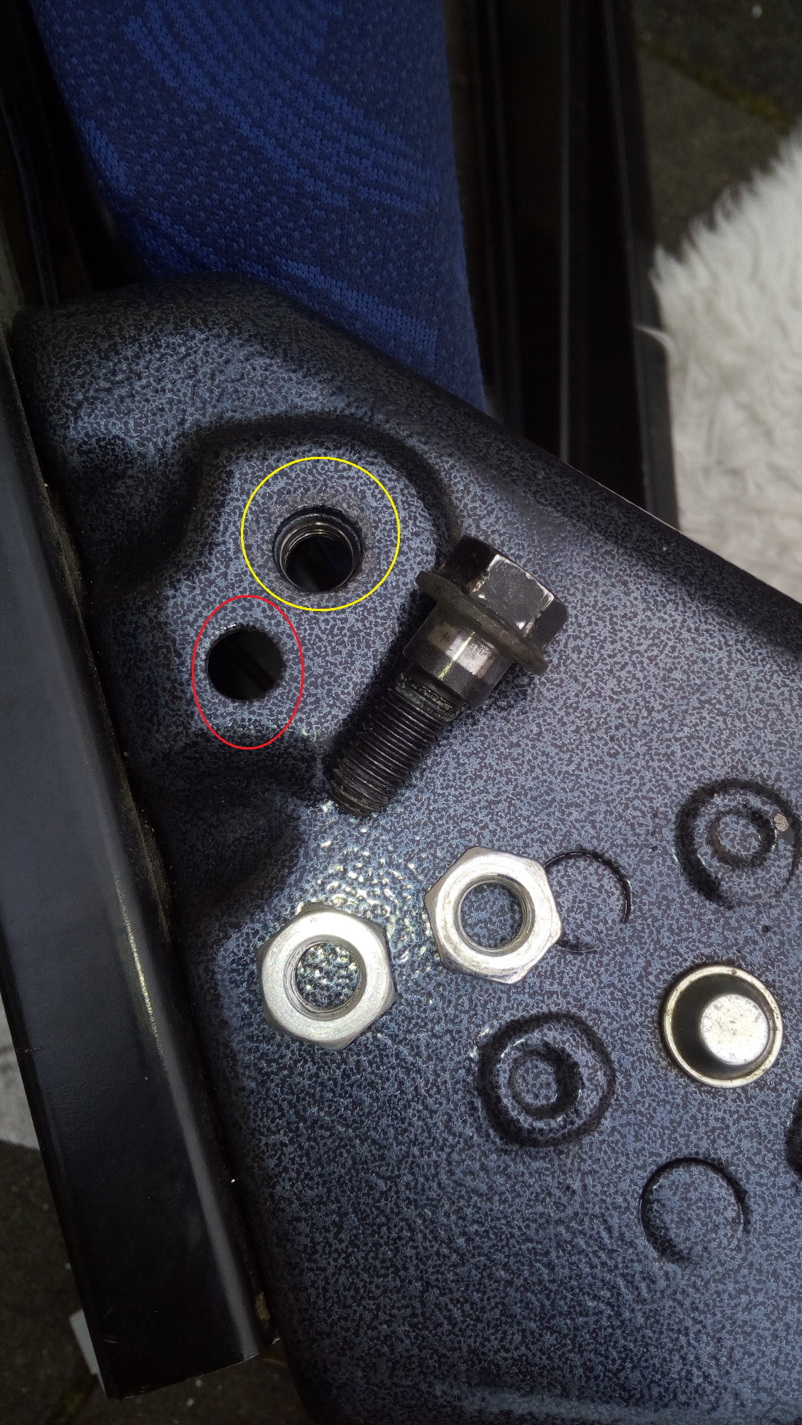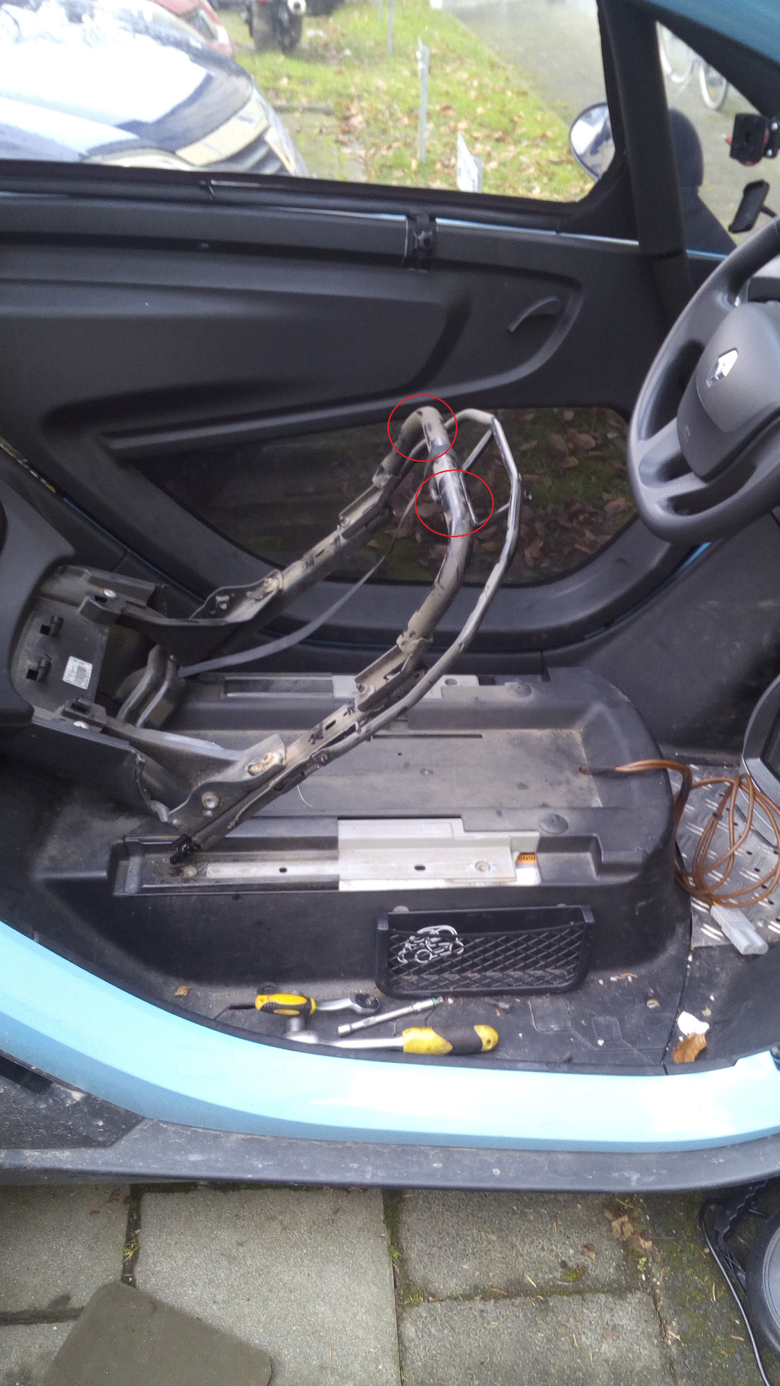 Ich habe die Original Twizyschraube genommen und aus meinem Lager 2 passende Muttern und bin durch das Loch neben der Original Smart befestigung gegangen. Die Bilder sind selbst erklärend.