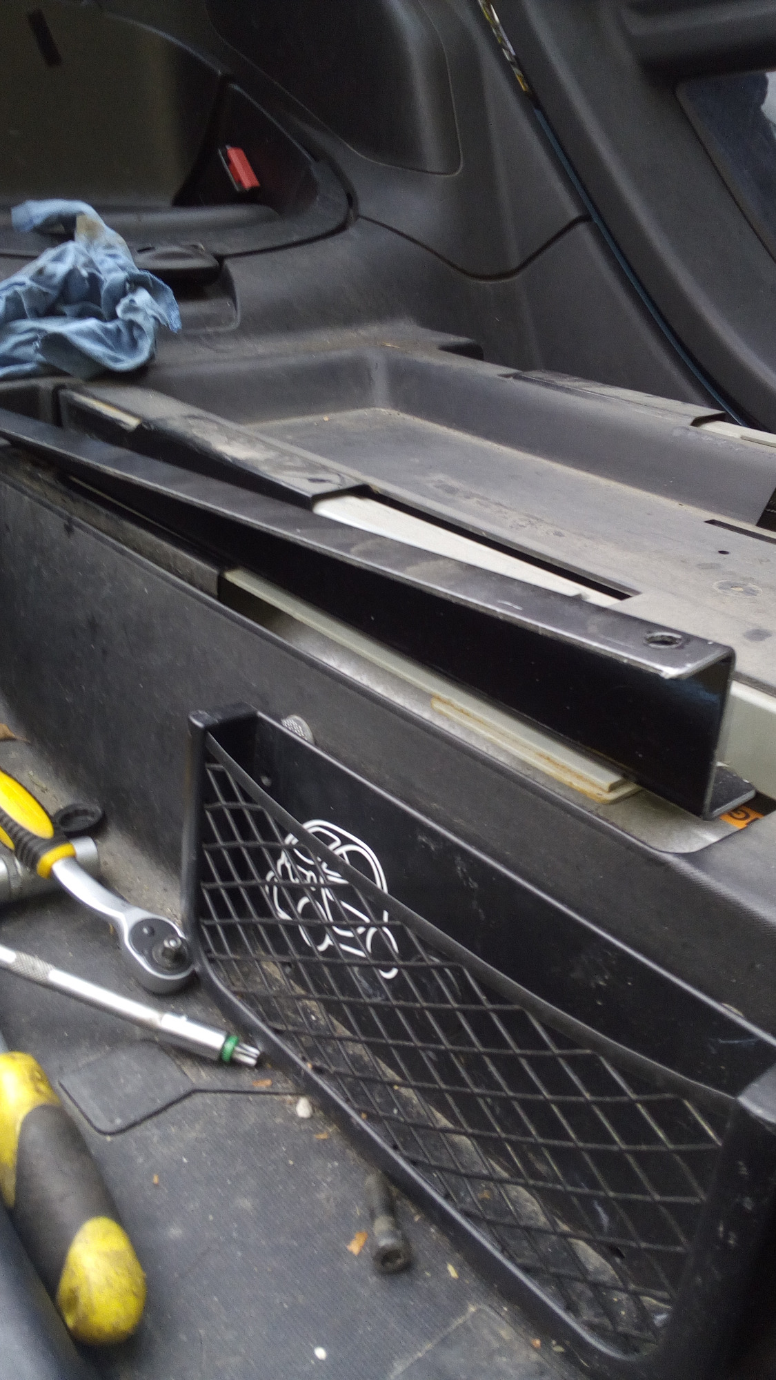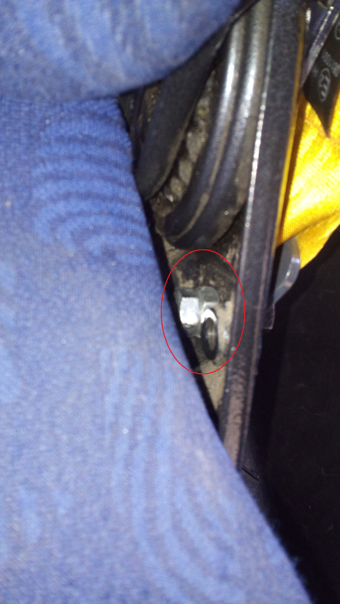 Zur Erklärung, ich habe das Polster abgebaut um mir nicht die Finger zu brechen beim Lösen der vorderen Schienenschrauben.