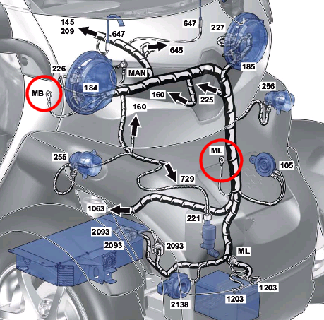 Dürfte wohl die hintere Masse gemeint sein? Hinten links zu finden ... die anderen sind ja mehr im Innenraum.