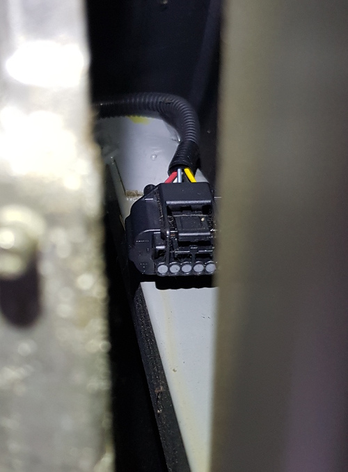 Den sieht man, wenn man in den Spalt zwischen Ladegerät (rechts im Bild) und Batterie (links im Bild) schaut. Er scheint nicht angeschlossen zu sein. Das einzige was meinem Kleinen fehlt ist die Freisprechanlage (dafür wären die Kabel an einer komischen Position), die Diebstahlwarnanlage (DWA) und die Rückfahrsensoren. Ist der Stecker vielleicht für die Rückfahrsensoren?