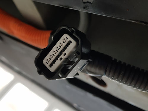 Dieser Stecker zur Batterie ist denke ich nicht verantwortlich für den Fehler. Wenn ich ihn abziehe und den Twizy starte kommt zwar auch die " - - " leere Anzeige, aber im Fehlerspeicher ist Fehler DF512 (Keine Kommunikation mit Getriebe). Laut Renault Fehlercodes für Twizy ist mit "Getriebe" die Traktionsbatterie gemeint. Der sporadische Fehler der mit Diagnosegerät auftritt (s.u.) ist hingegen DF131 (Keine Kommunikation mit Emission). Das ist Renault-Sprech für "Ladegerät".