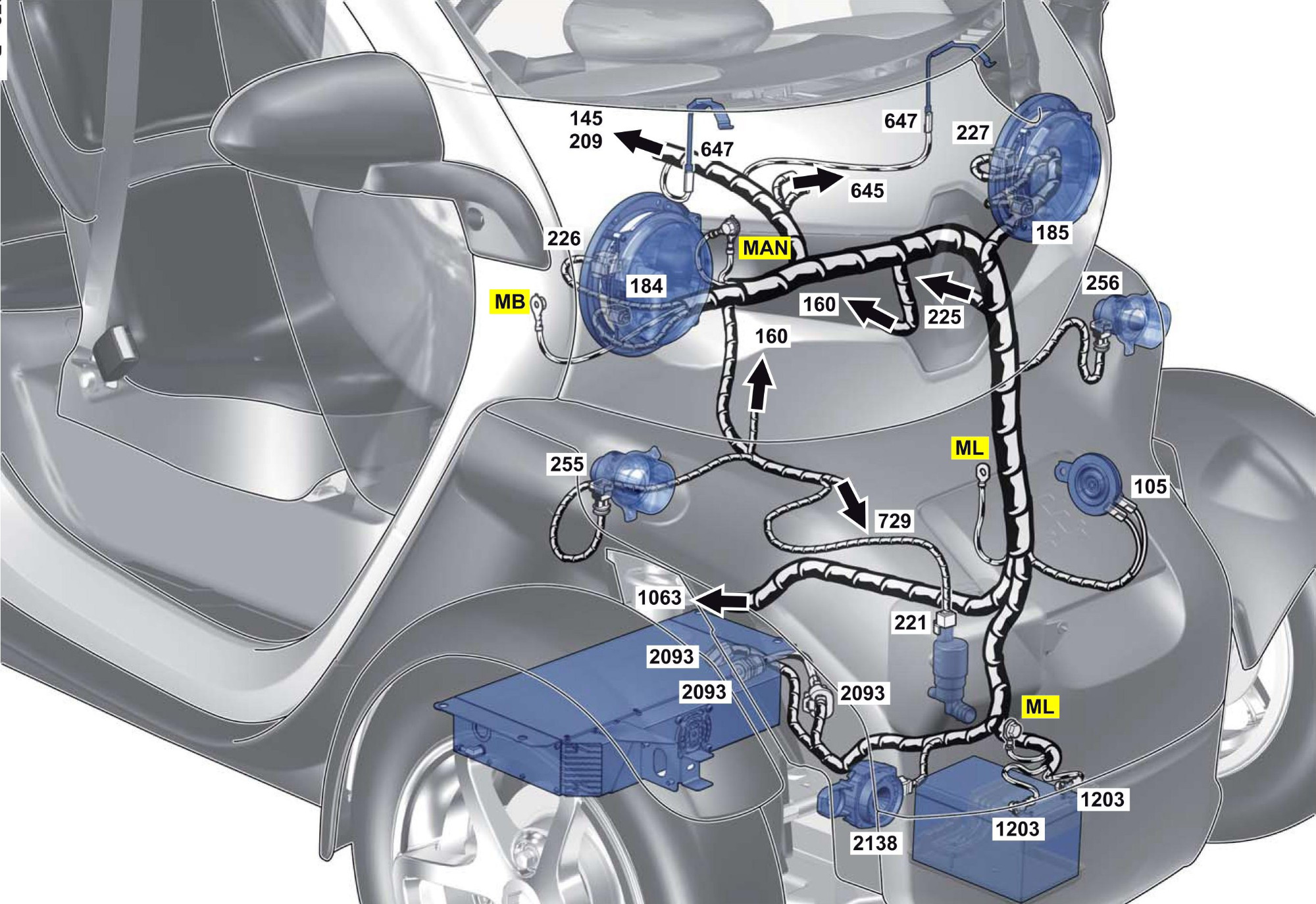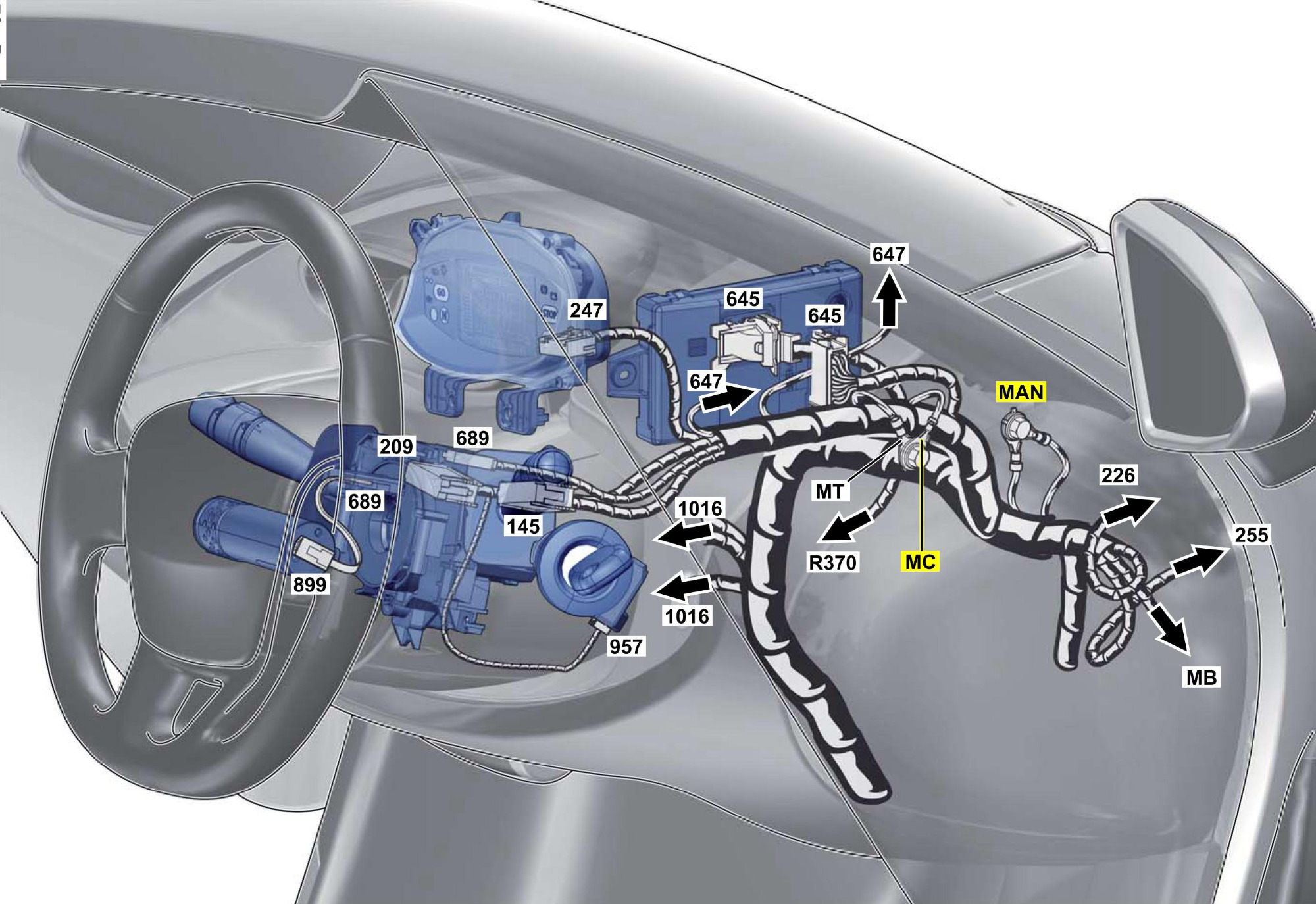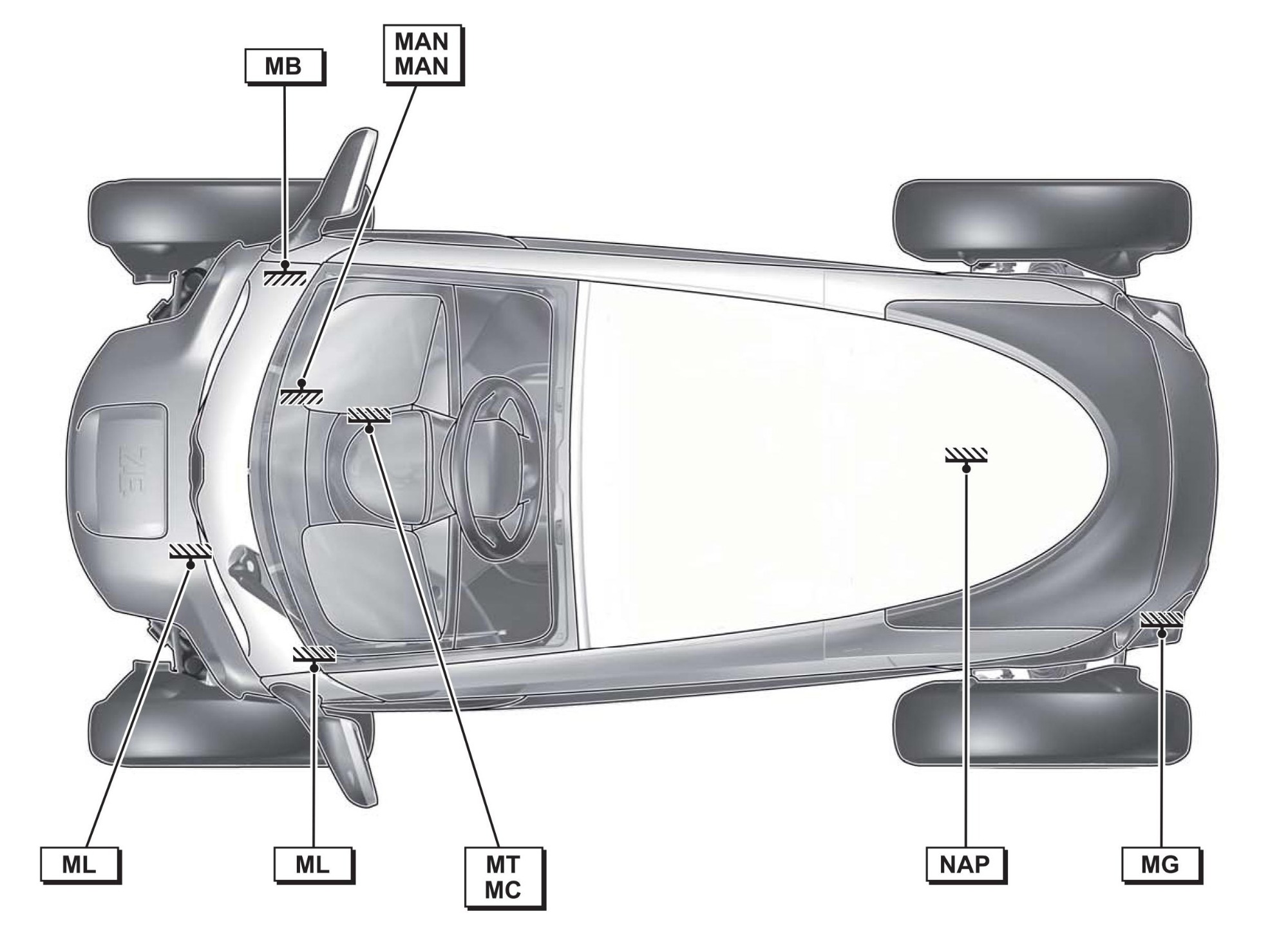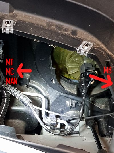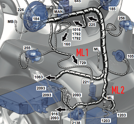Beim ersten handelt es sich um eine Korrektur: ML1 befindet sich bei der Bremsleitung links im Schacht, besser zu sehen von vorn ca. 20cm hinter der Hupe.
