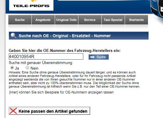 Erst als ich die schon erwähnte Renault-Nr. in das OE-Feld eingab, wurde ein Angebot angezeigt.