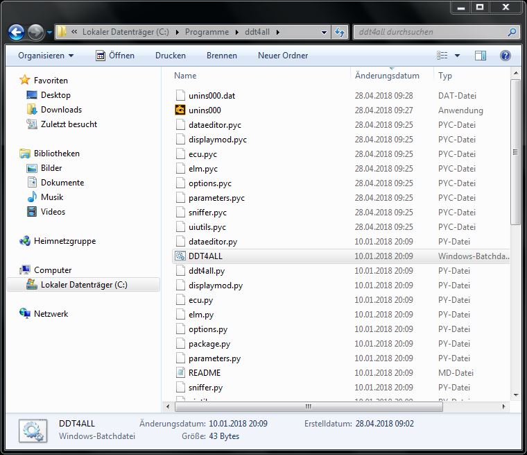 6. Starten des Programmes durch Start der batch Datei