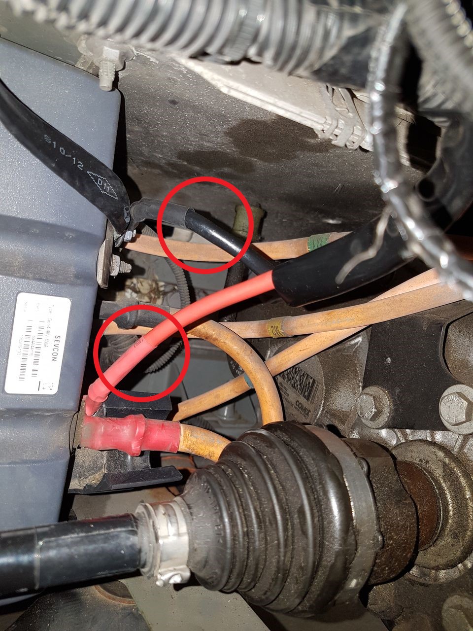 Wenn man die Heckschürze abschraubt, kommt man relativ gut von hinten an die Sevcon heran und kann seine Kabelschuhe auf die vorhandenen Kabelschuhe legen und anschrauben: