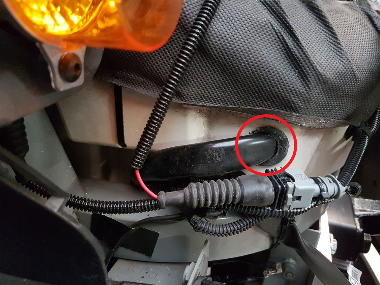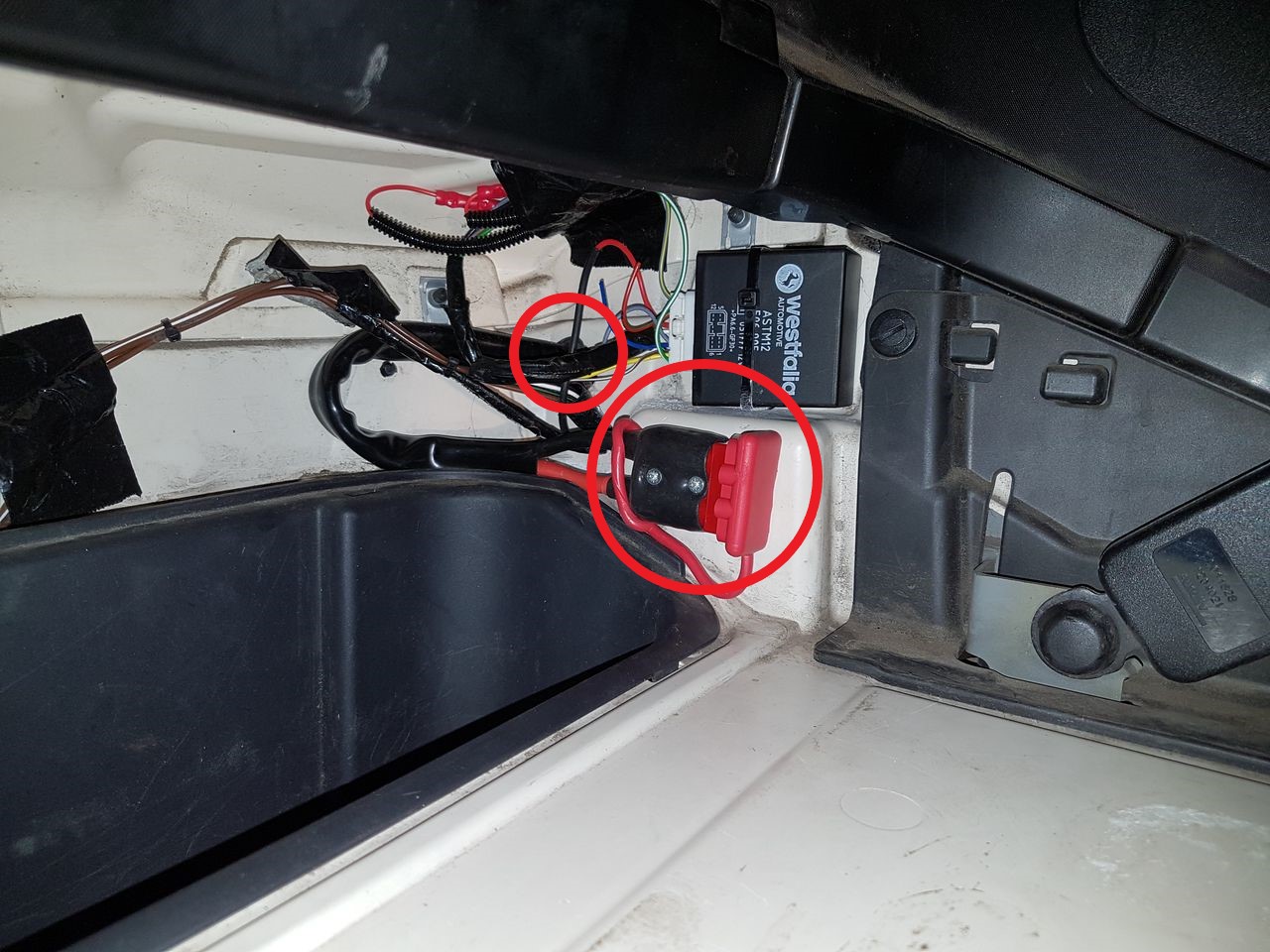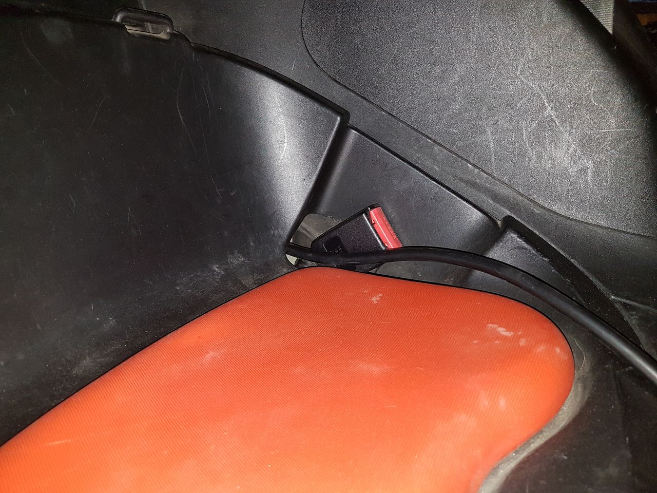 Hier kann man sehen wie ich das Kabel unter dem Rahmenrohr hindurch und durch das Loch in den Kofferraum geführt habe: