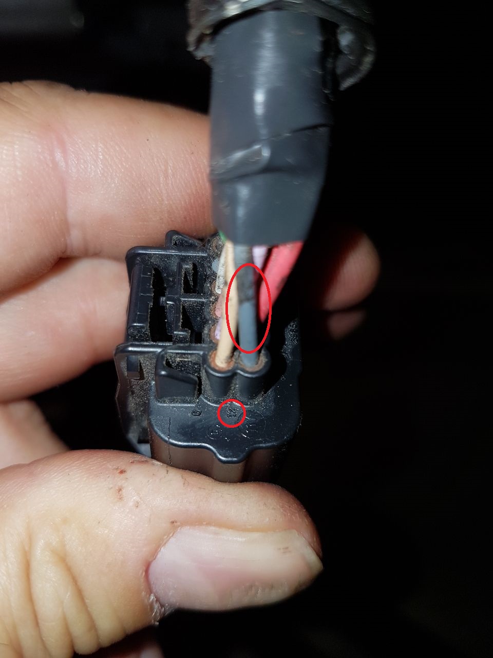 Aber nun zurück zum eigentlichen Thema: Ich habe Pin12 identifiziert... das ist auch nicht so schwer, wenn man weiß, dass auf der Rückseite des Yazaki-Steckers an den Seiten die Bezeichnungen stehen. Es ist die graue Leitung in der unteren Reihe links außen. Die neben dem roten Kabel.