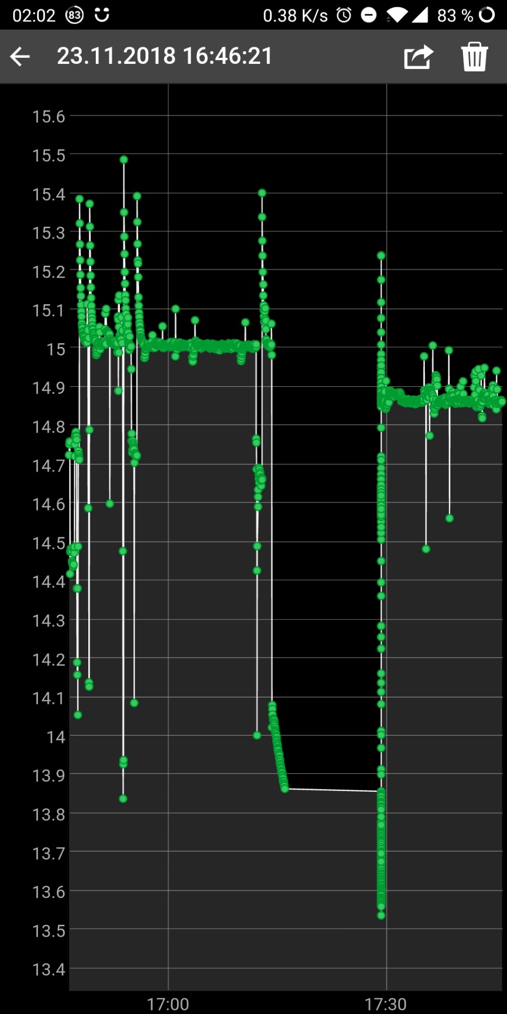 Zzt nutze ich Dashboard + Hardwarevoltmetermodul am Zigarettenanzünder. Nur so schöne Messschriebe bekomme ich halt nicht.