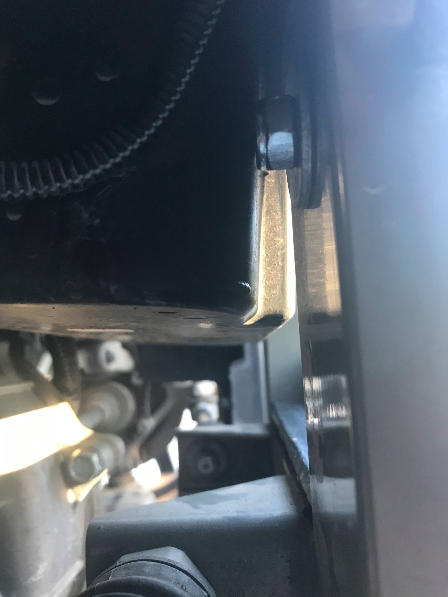 Hier das foto von der durchgebohrten oberen halterung mit beilagscheibe und selbsichernder mutter. ( das war etwas eng )