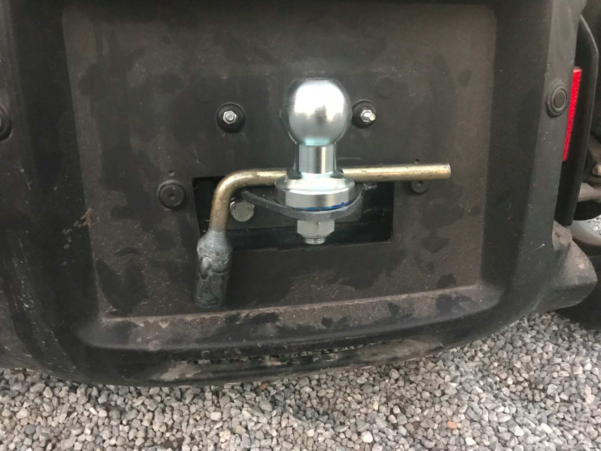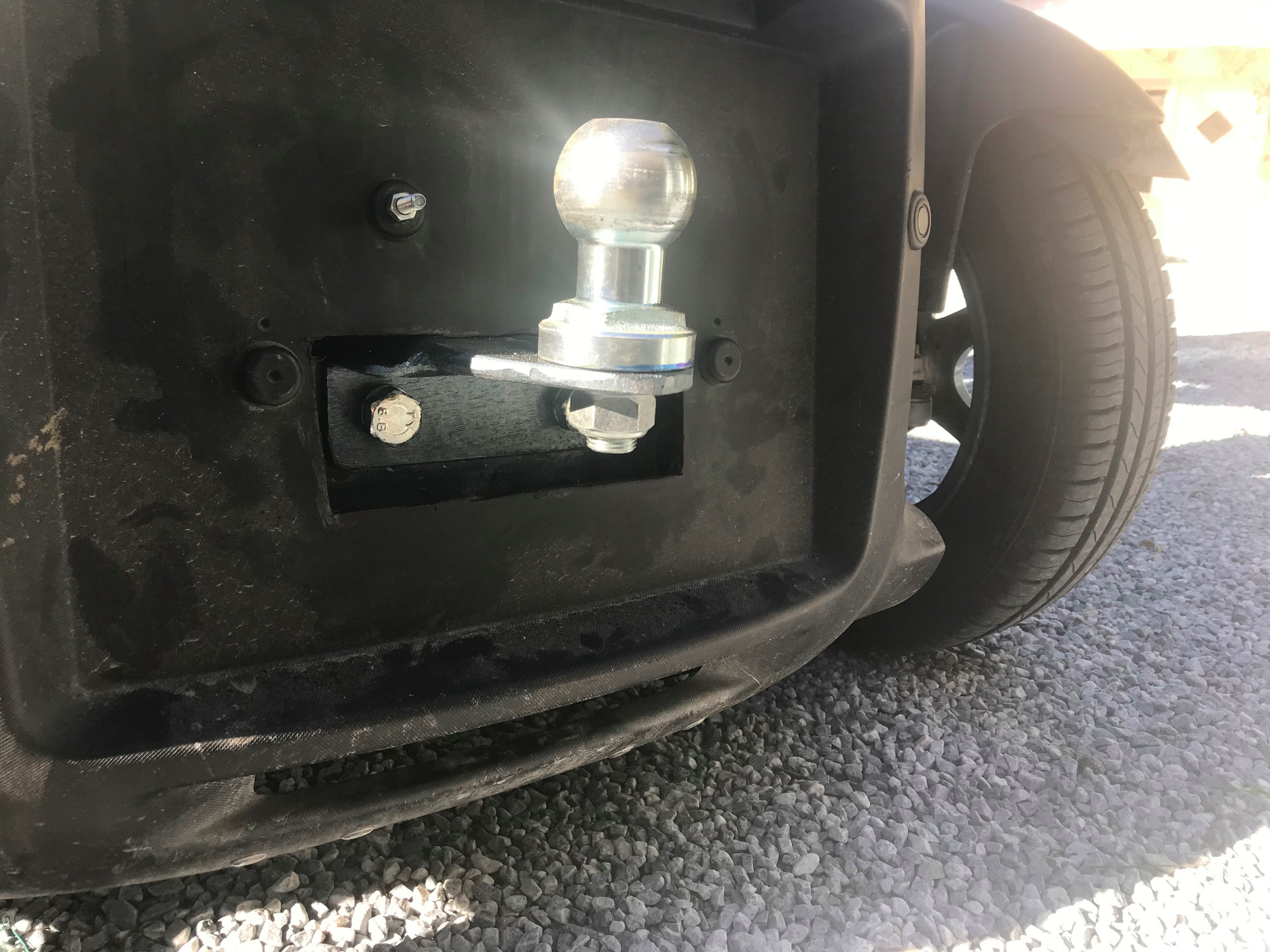 Also das sieht ja ganz komisch aus und entbehrt sich auch jegwelcher nutzung dieses fahrzeugs was da auf den kugelkopf aufgebaut wurde. Also damit wirst du sogar in spanien des platzes verwiesen!
