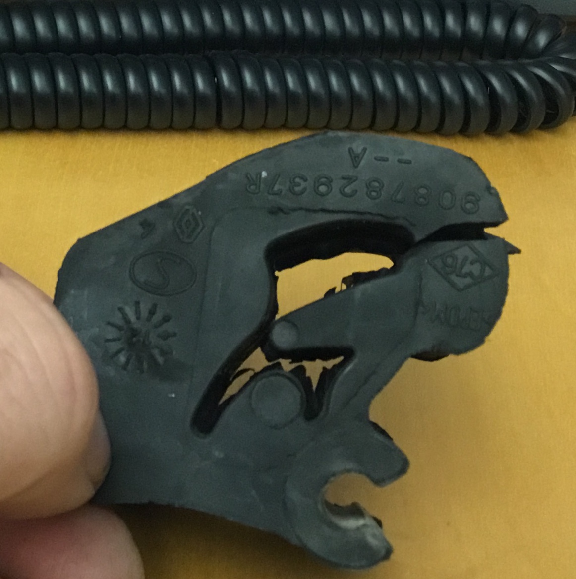 Jup, ein fettes Gummiteil, wohl der fehlende Anschlag. Und es hat einen Riss durch die ganze Breite.