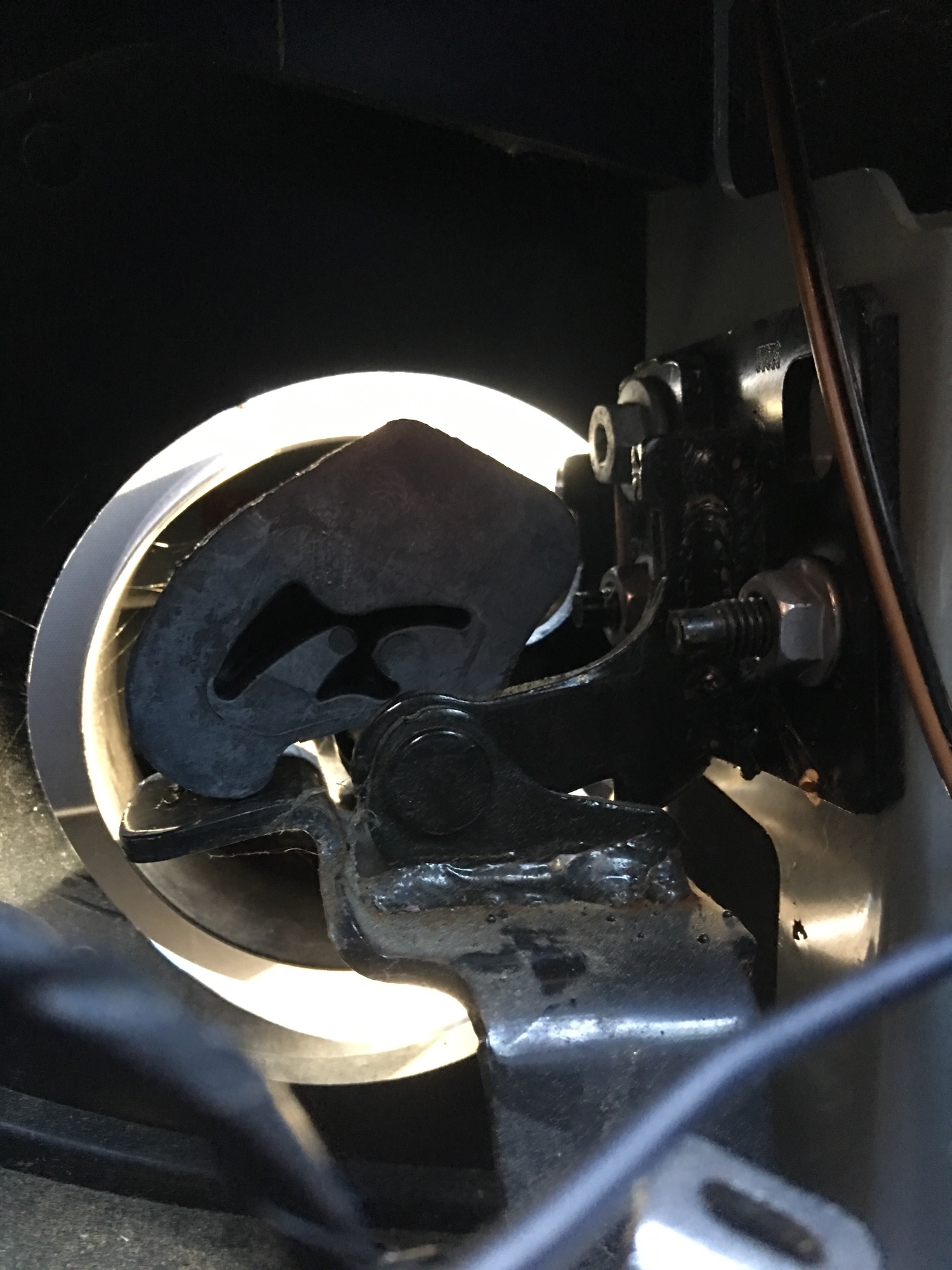(Die Scharnierbolzen stecken bei mir nur noch, Sicherung hab ich mal weggeknipst. Hält auch ohne.)