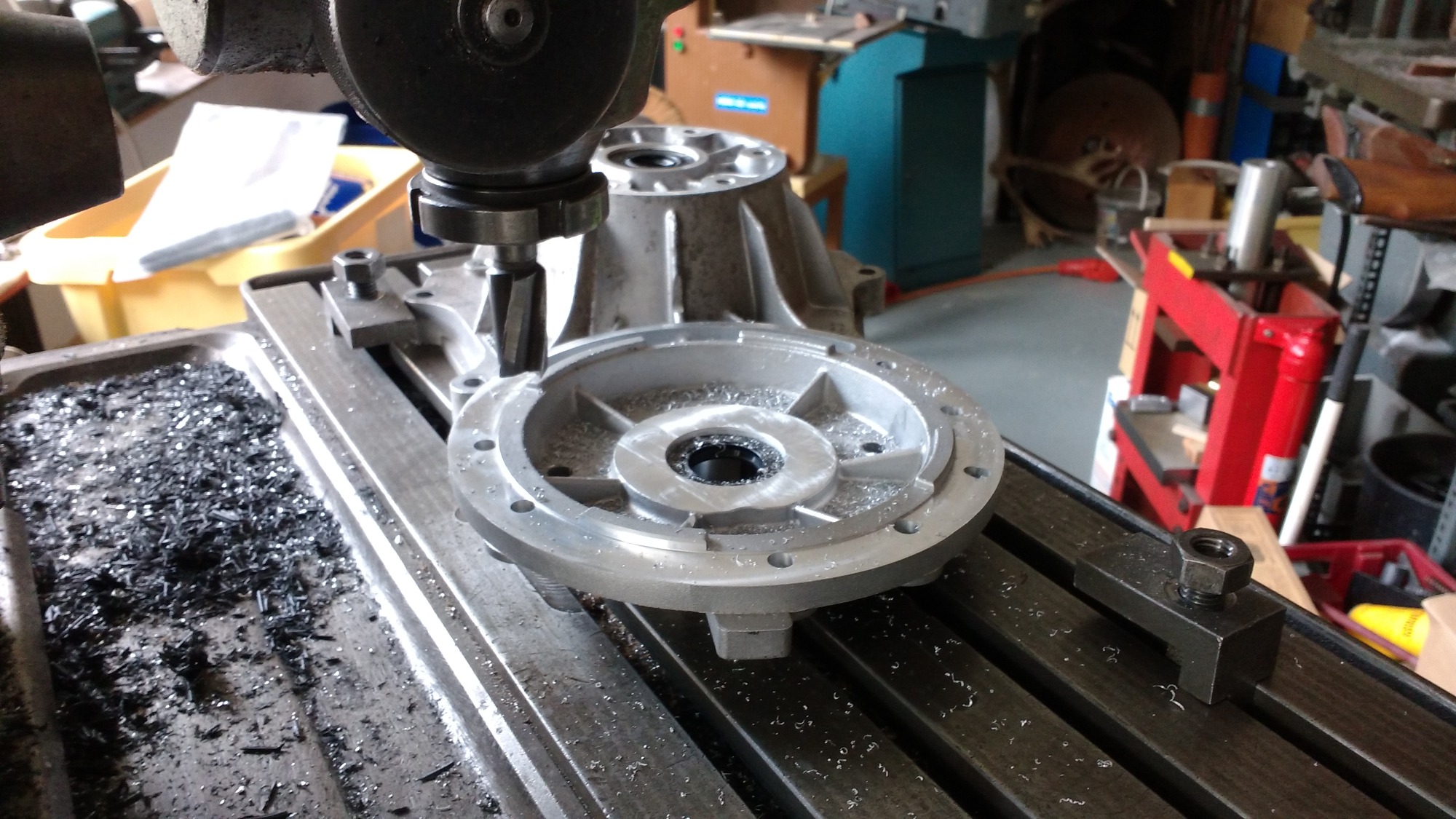 Ich bring dann gleich die Lagerhalter und Lager mit, da kannste dann gleich die Sacklöcher bohren und Gewinde schneiden.