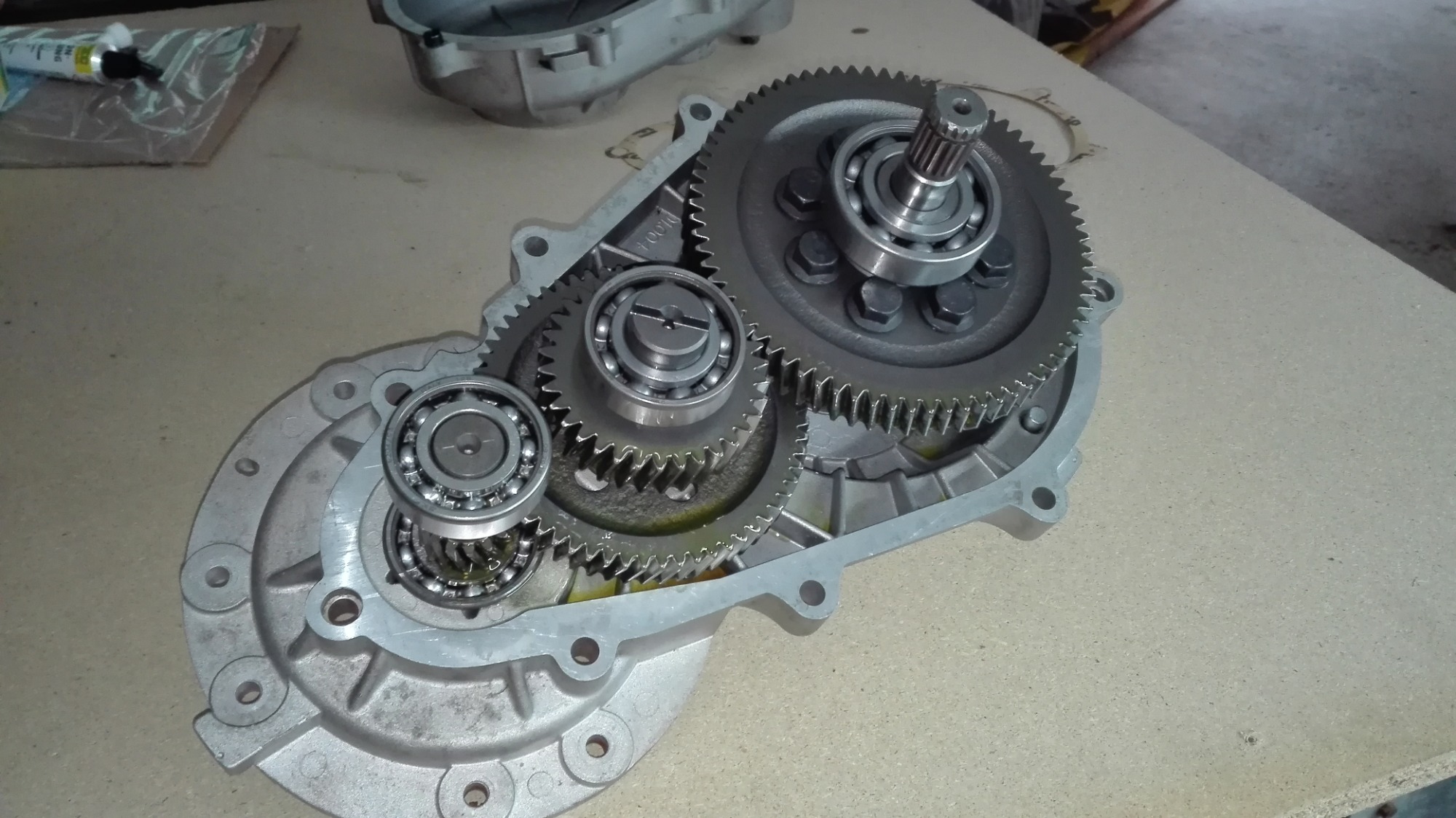 Dieses Getriebe wartet nun auf den Werkstatt-Termin und auf die fleißigen Hände meiner Stammtisch-Kollegen.