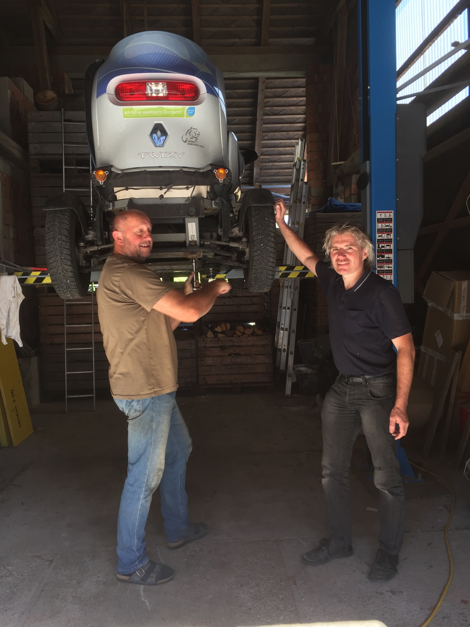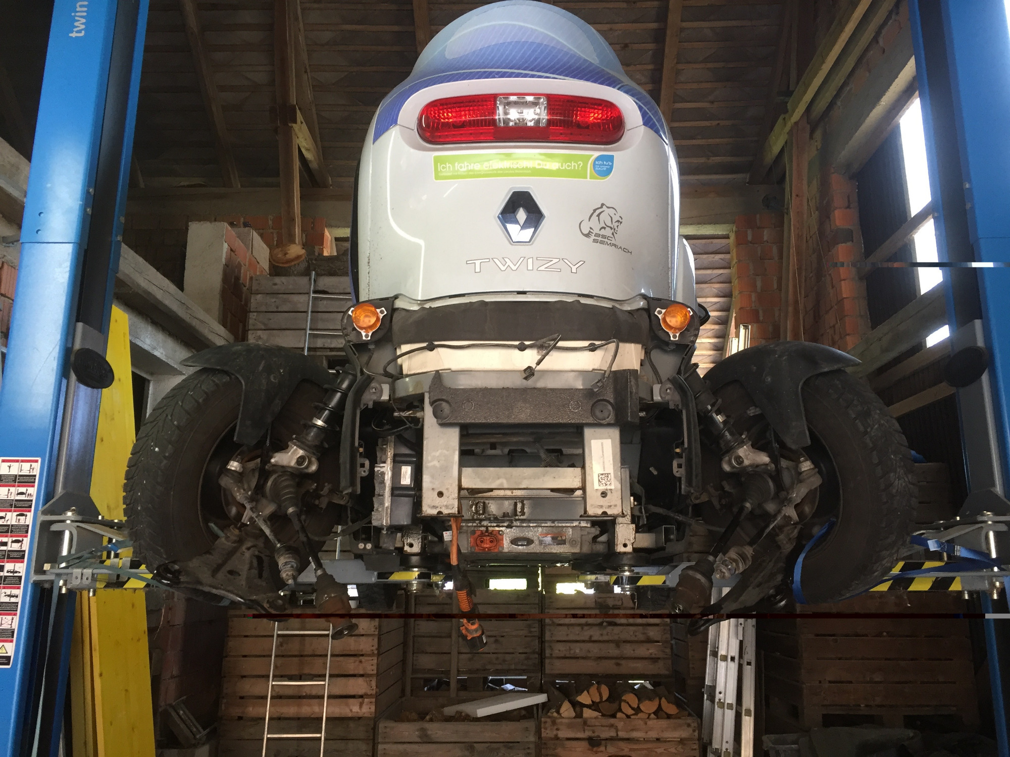 Gute 6 Stunden (inklusive Mittags- und Kaffeepause) war Rolands Twizy auf der Hebebühne.
