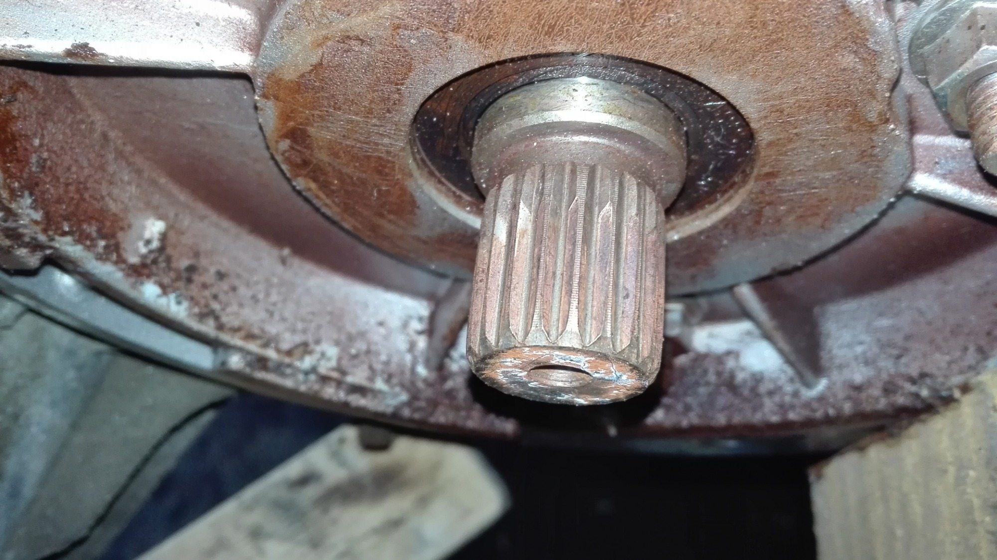 Getriebeseitig ist diese Verzahnung die sich in sich abstützt und sich immer mehr abnutzt.