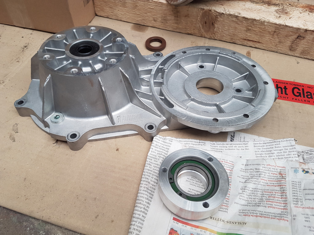 Fläche planen, bohren und Gewinde, Zusatzlager verbauen mit Schrauben und Schraubensicherung, Differential Passscheiben Einbau, zur Not auch Wellendichtringe ...