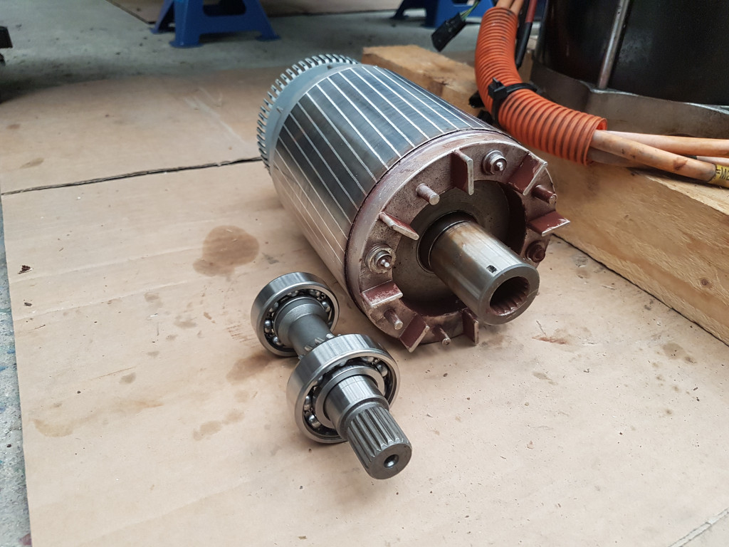 Anders die Rotorwelle aus dem E-Motor. Die ließ sich nach Pfälzer68s Tipp per PM nur mit einer Heißluftpistole und einem heftigen Hieb mit Hartholz und Fäustel lösen. Danke, Klaus! Sie ging aber nicht so schwer raus, dass ich mir jetzt Sorgen um das Lager mache.