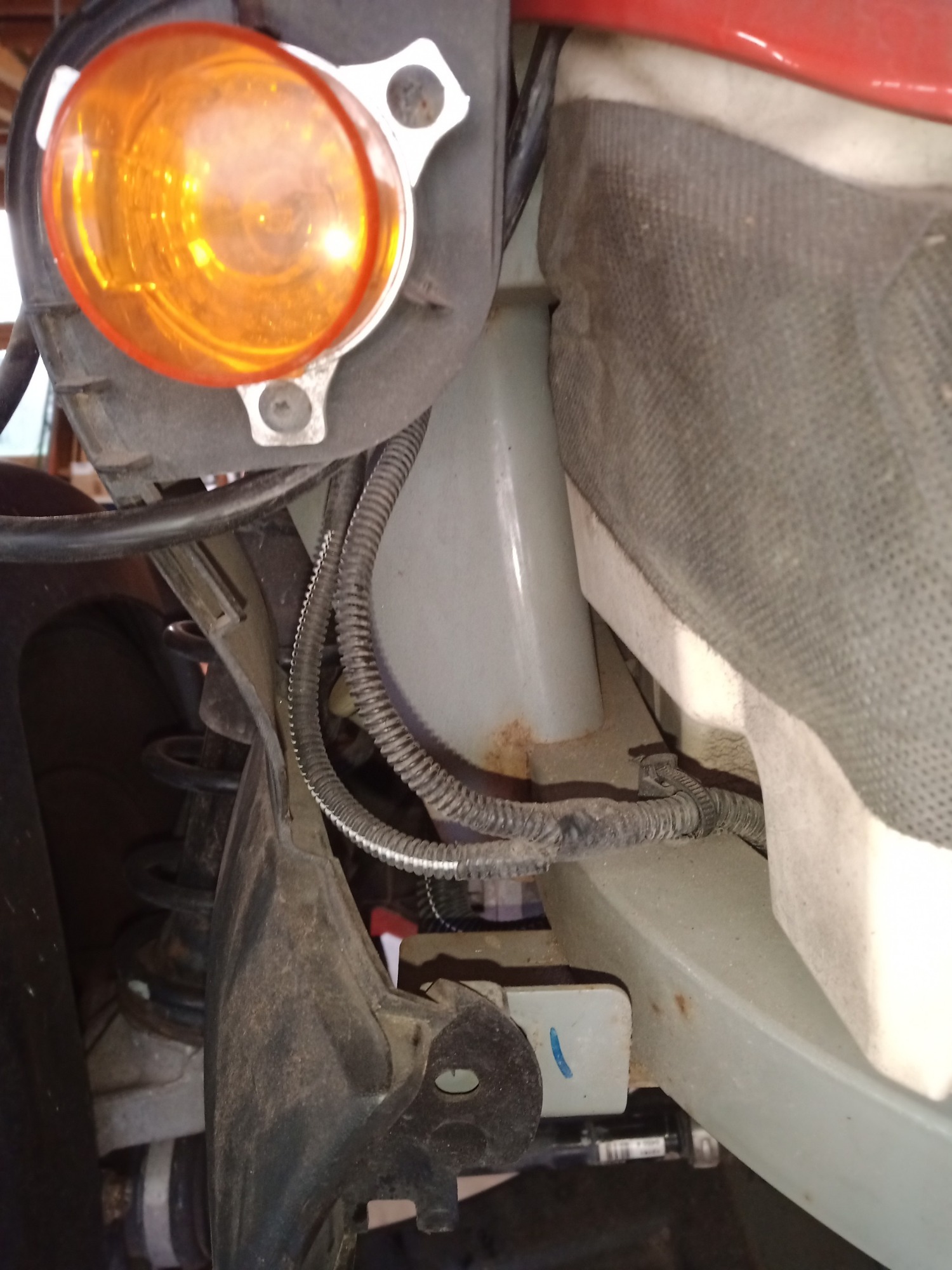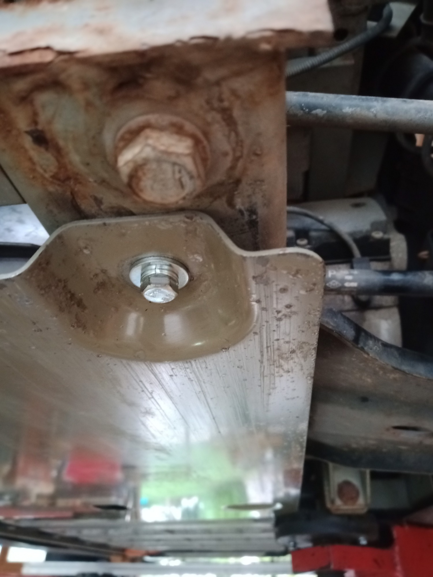 Netterweise hat die rechte hintere Bodenblechschraube in der Pressmutter gefressen und die Mutter drehte sich mit... gut das es vor Ort "Fein"e Maschinen gibt und die Nachbarn entspannt sind..
