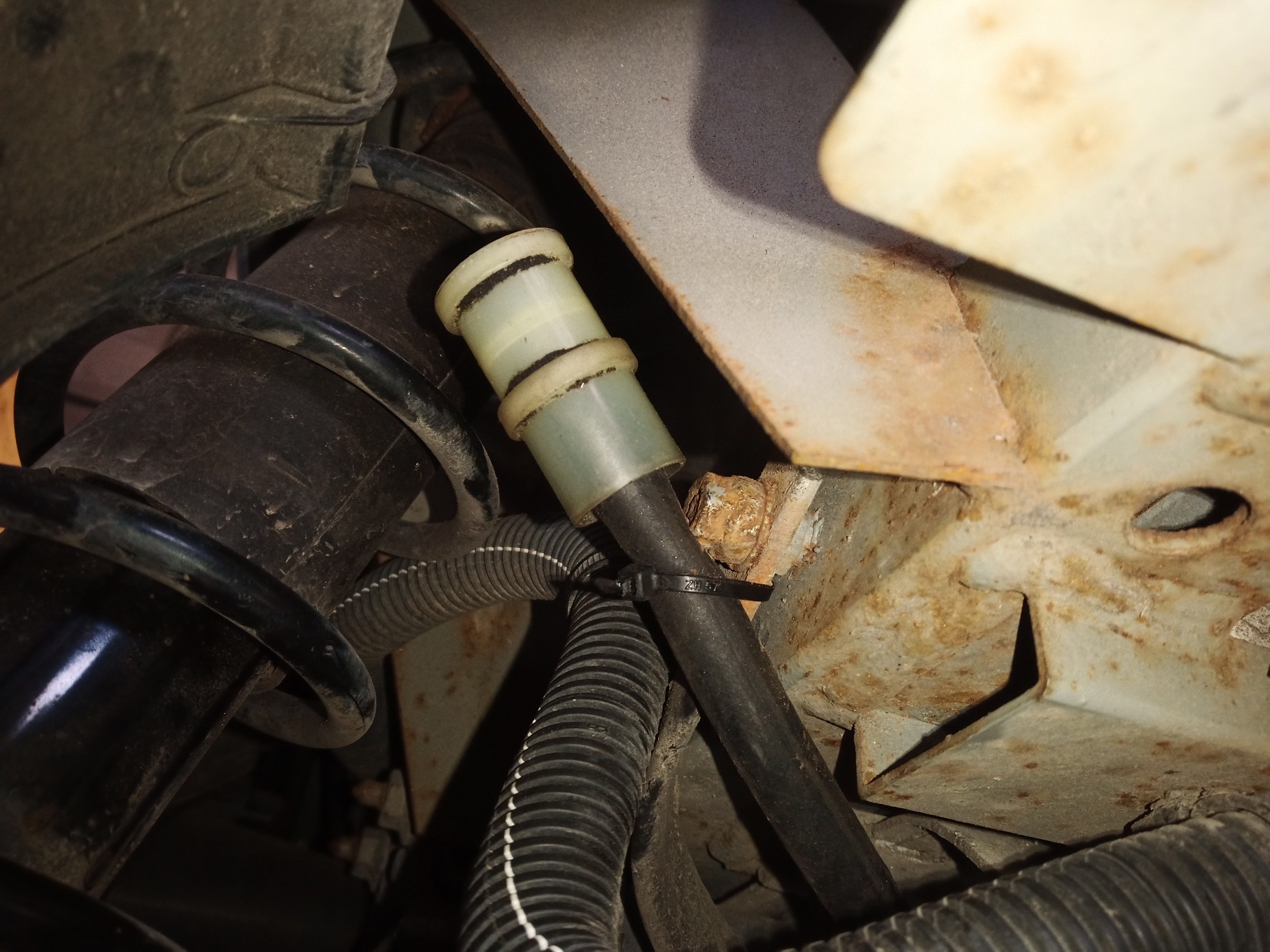 Später hab ich die Mutter an einigen Punkten angekörnt und in den Schraubenrest ein 6er Gewinde geschnitten, hält erstmal. Entweder tausch ich den Hilfsrahmen eh oder der rechte Querlenker muss raus um da dranzukommen.